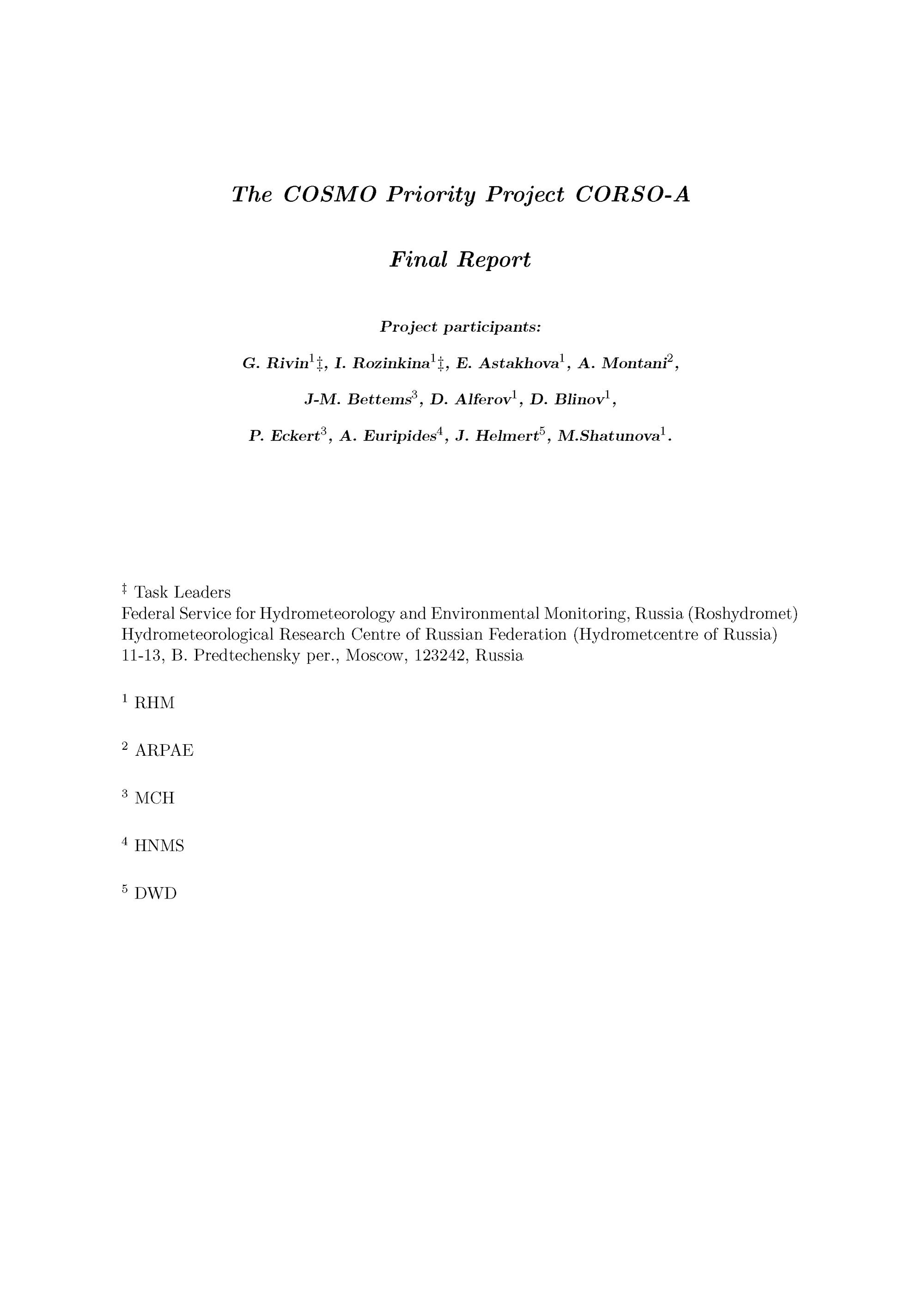 The COSMO priority project CORSO-A : final report / Deutscher Wetterdienst ; G. Rivin, I. Rozinkina, J. Helmert [+ 8 weitere]