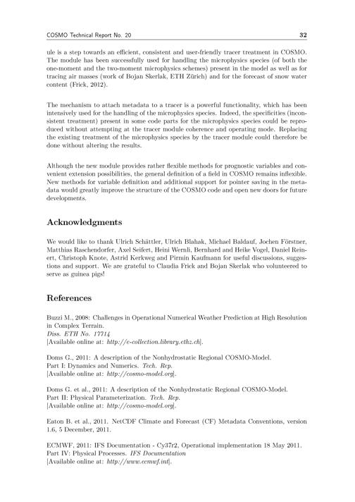Tracer module in the COSMO model / by Anne Roches and Oliver Fuhrer