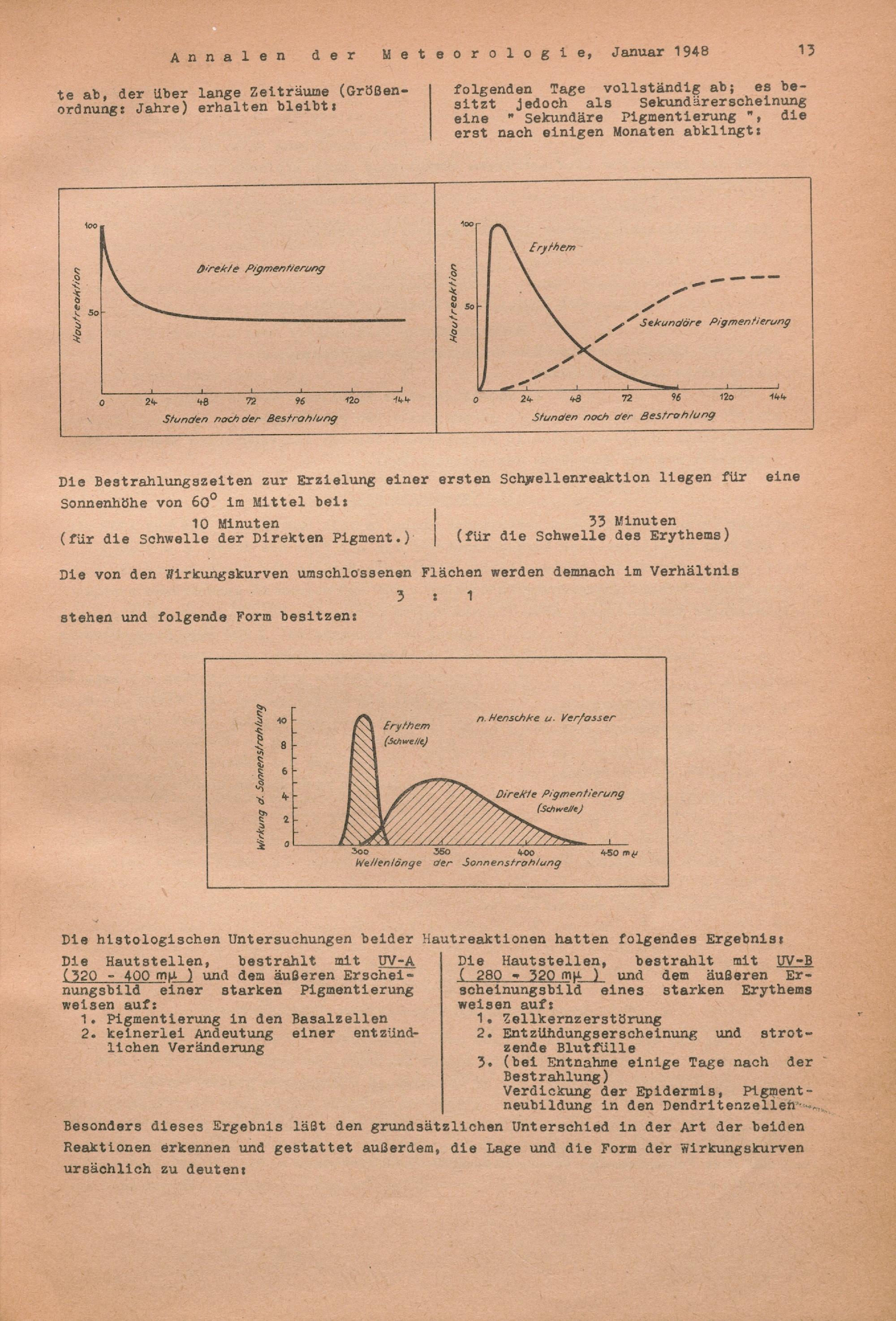 Über die Wirkung der Sonnenstrahlung auf die menschliche Haut