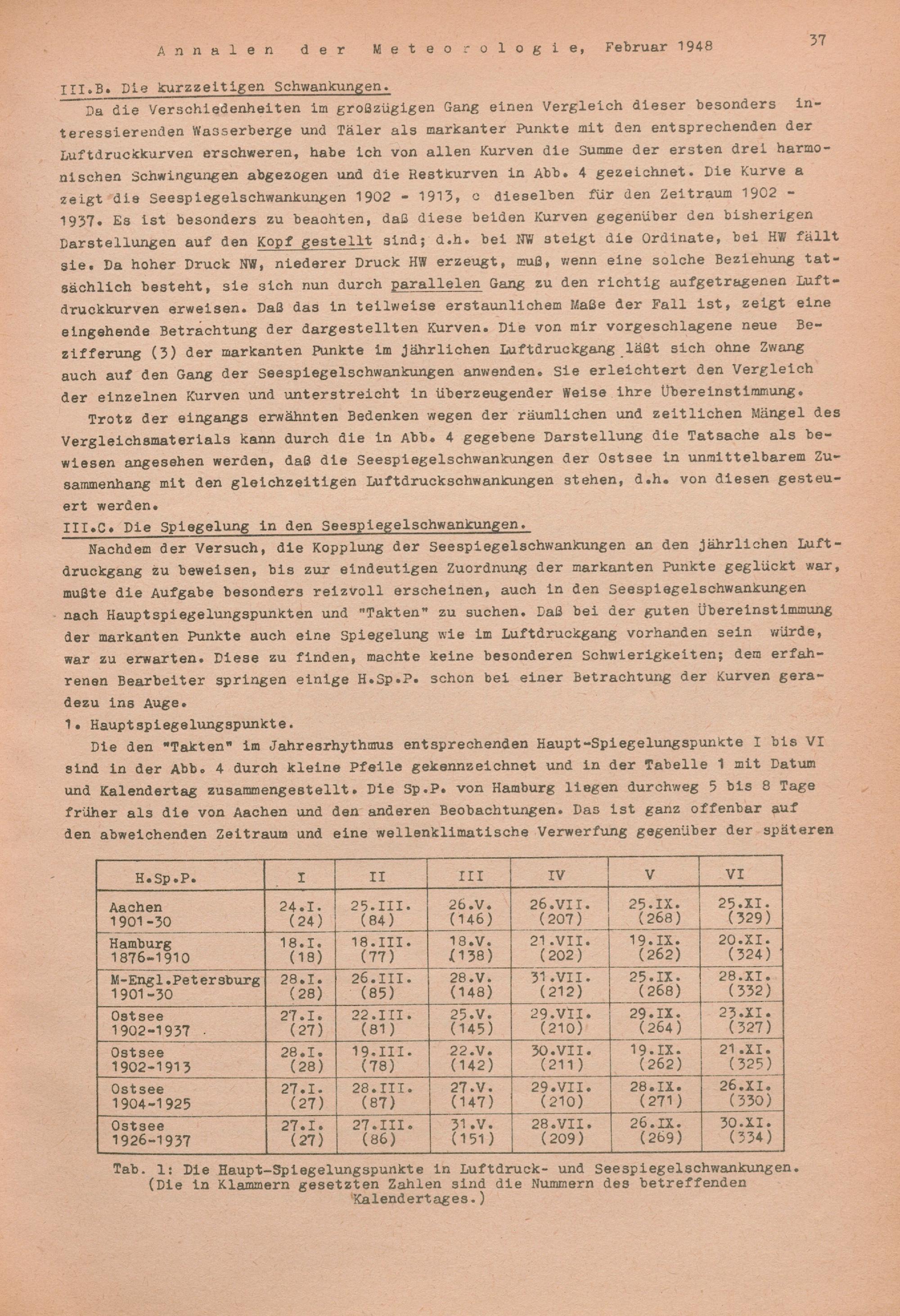 Die Seespiegelschwankungen der Ostsee als Spiegelung des jährlichen Luftdruckganges...