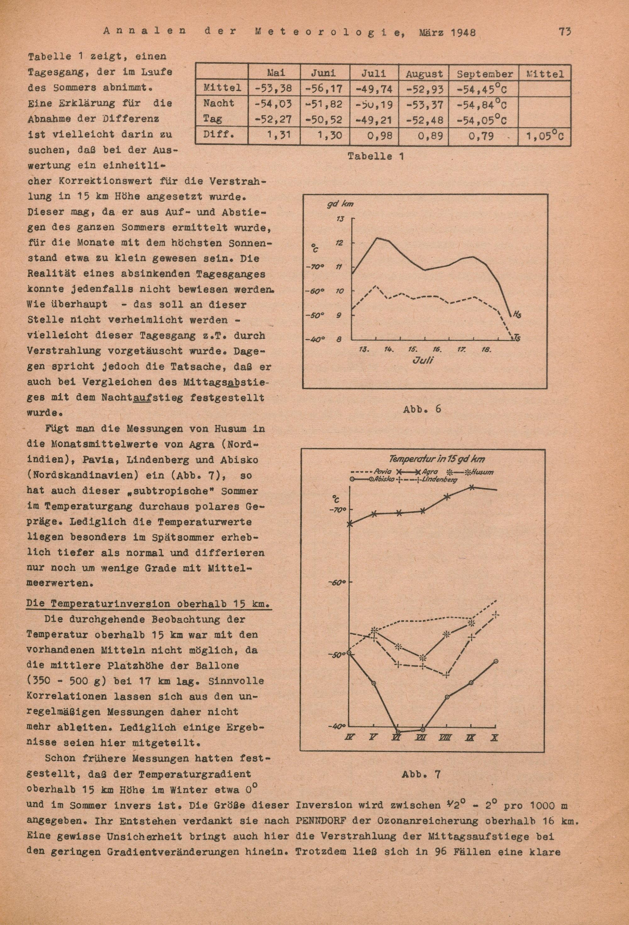 Temperatur und Wind in der unteren Stratosphäre im Sommer 1947