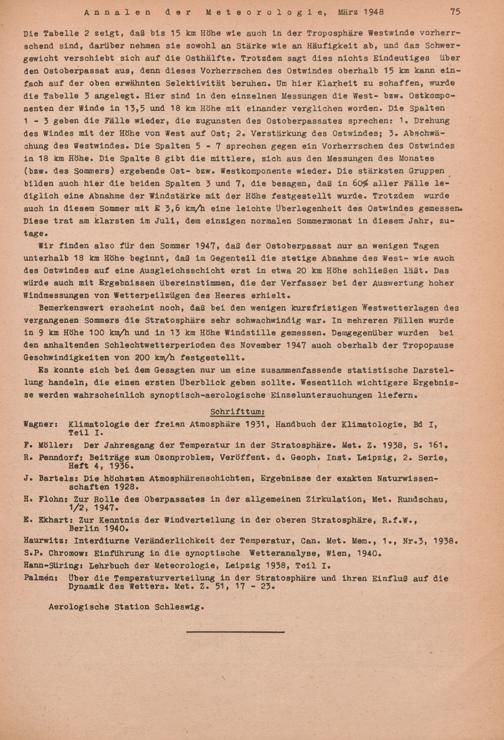 Temperatur und Wind in der unteren Stratosphäre im Sommer 1947