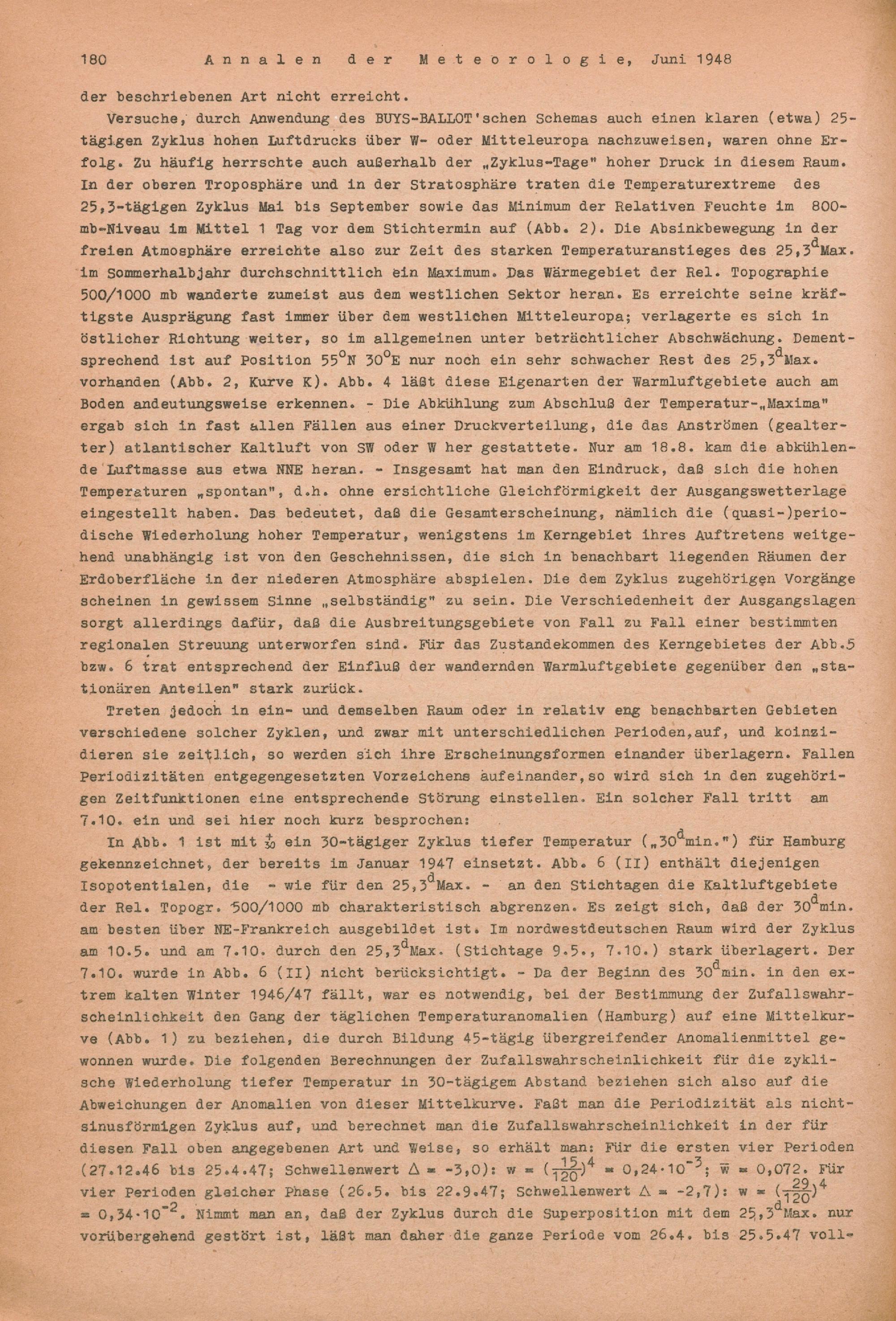 25-tägiger Temperaturzyklus im Sommerhalbjahr 1947