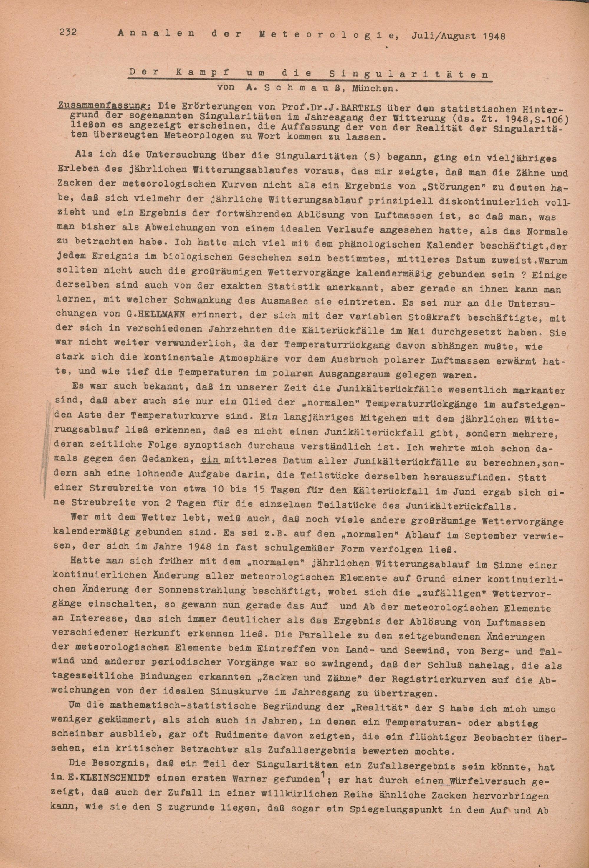 Schwankungen der Singularitäten des Niederschlages in Nordwestdeutschland