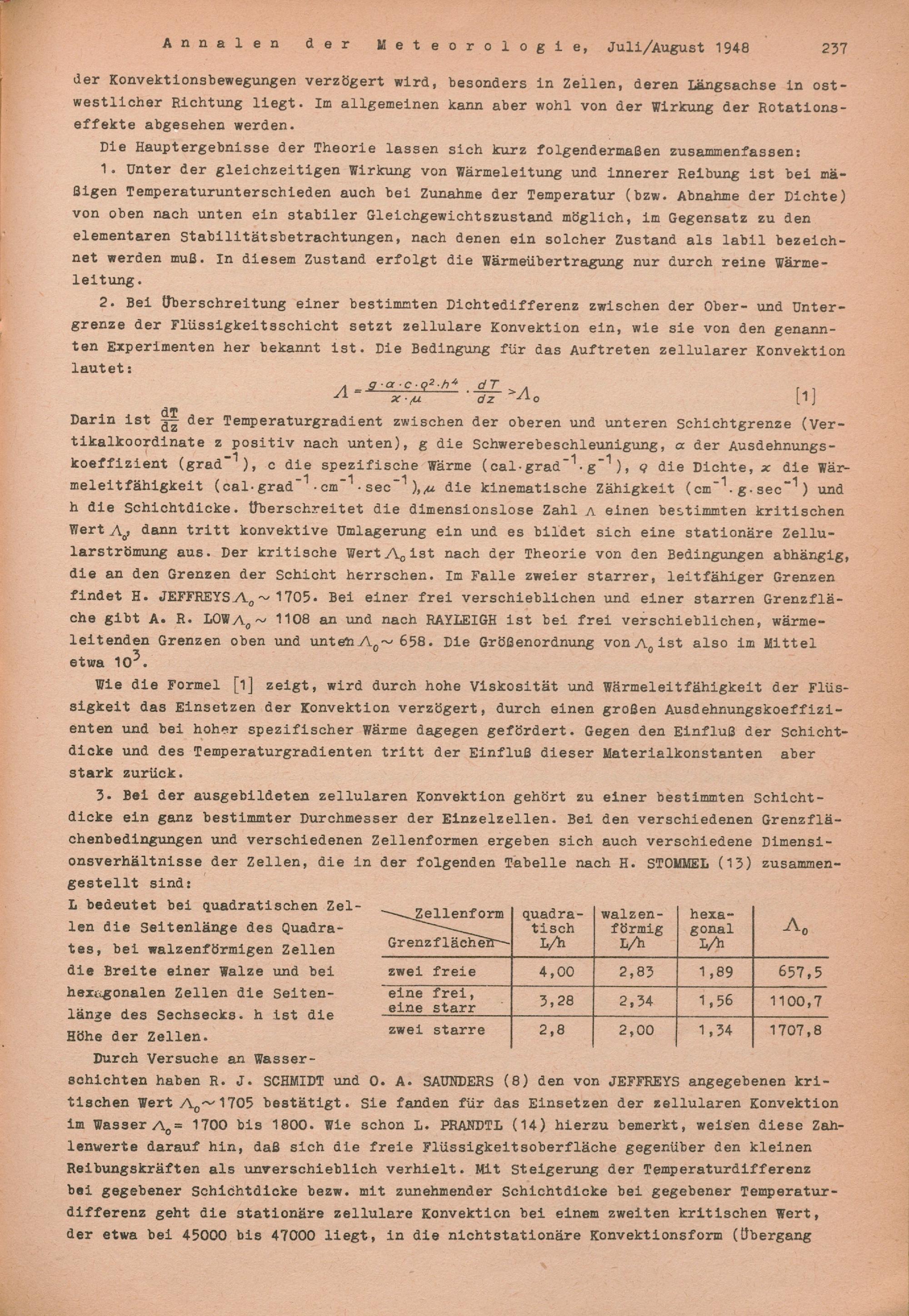 Bemerkungen zur Zellularkonvektion im Meer und in der Atmosphäre und die Beurteilung...