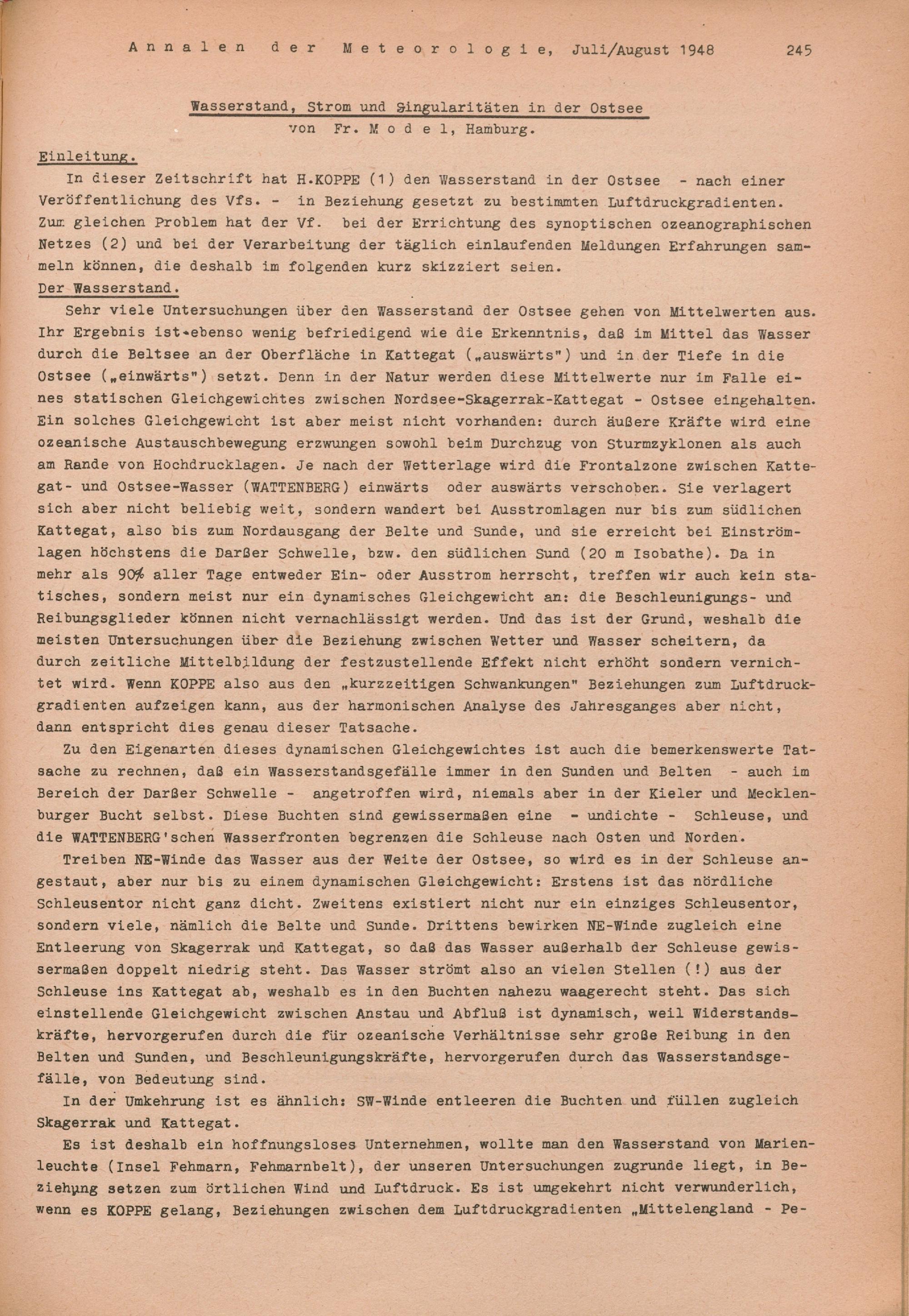 Wasserstand, Strom und Singularitäten in der Ostsee