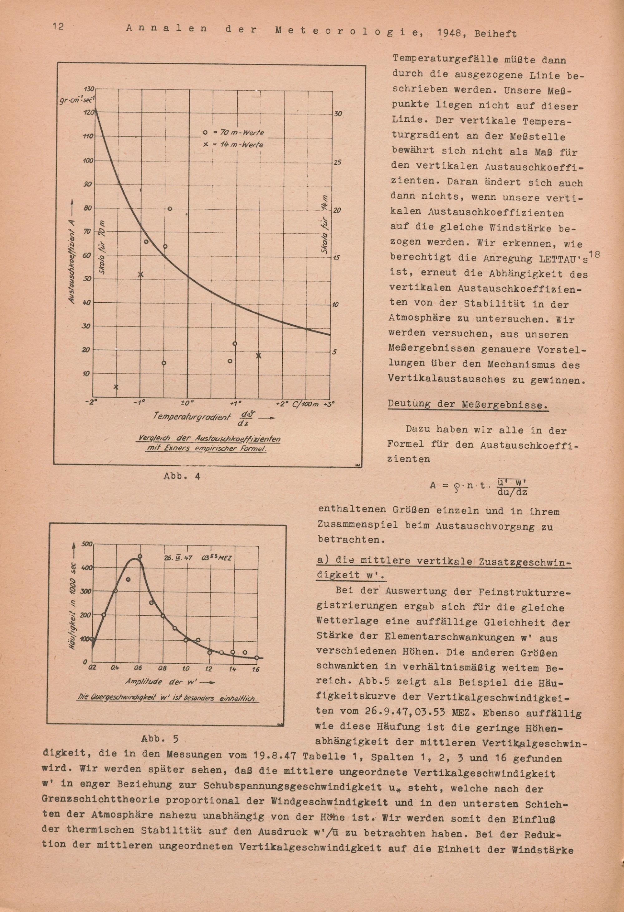 Über den Austauschmechanismus der Bodenschicht und die Abhängigkeit des vertikalen Massenaustausches vom Temperaturgefälle nach Untersuchungen an den 70 m hohen Funkmasten in Quickborn/Holstein