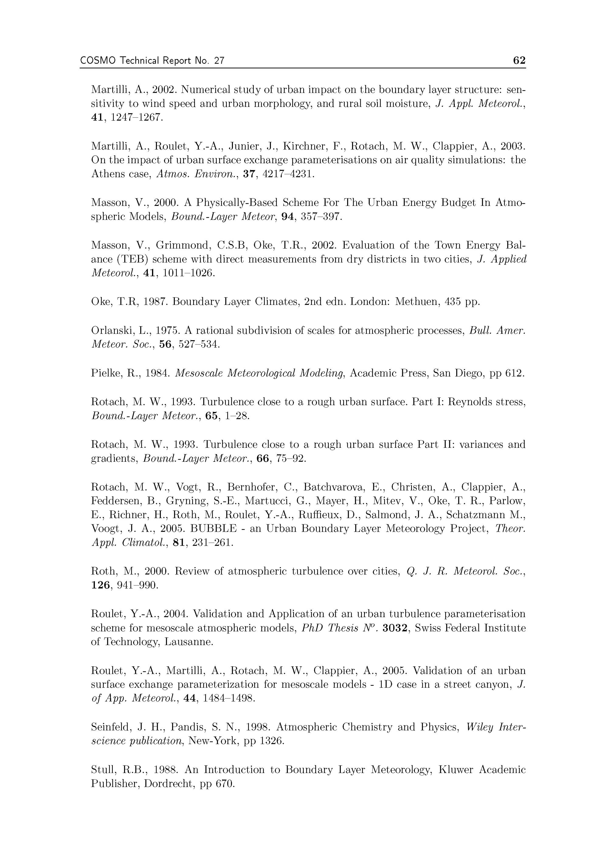 6. Implementation of the Martilli Urban Surface Parametrization in COSMO