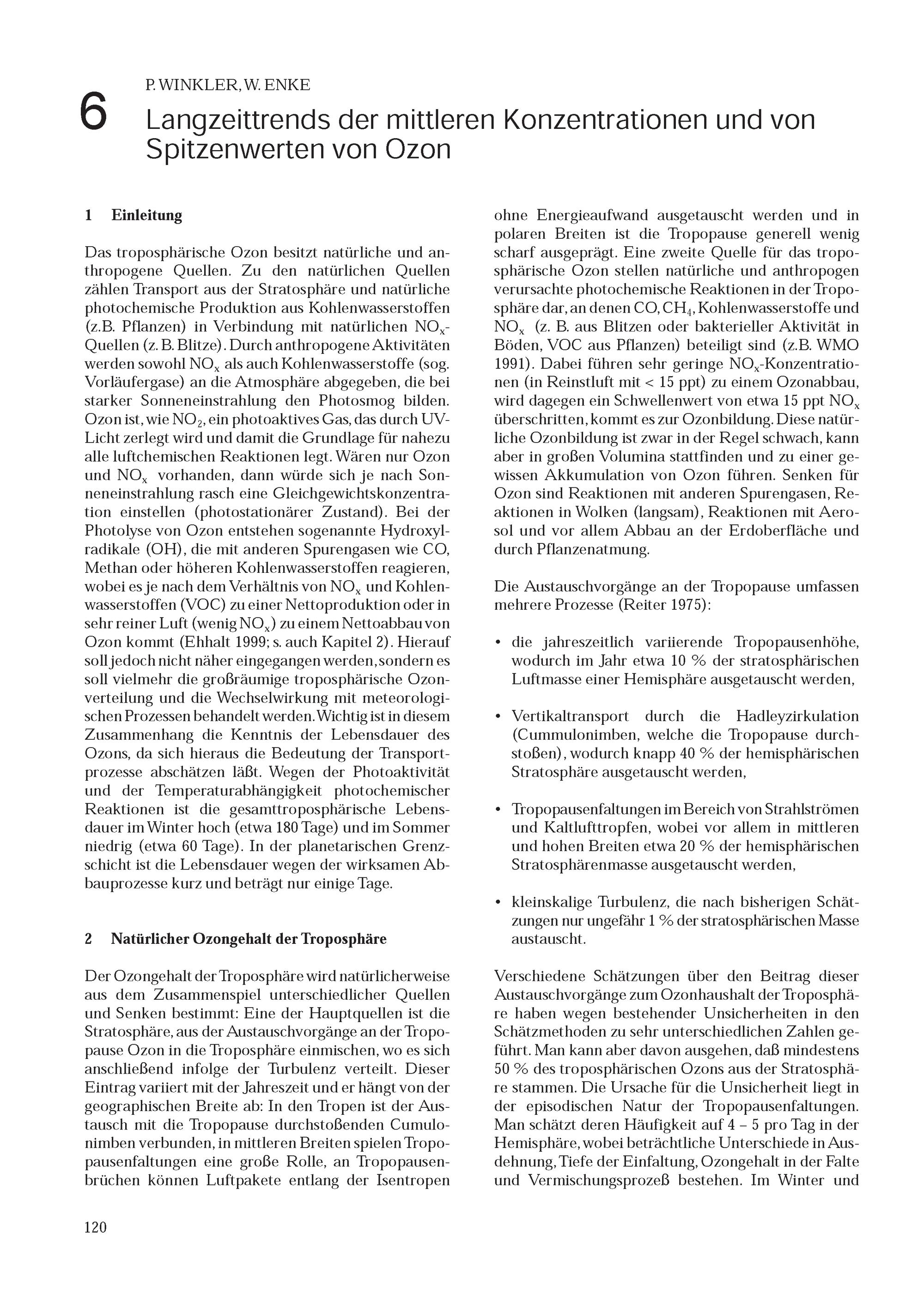 6. P. Winkler, W. Enke: Langzeittrends der mittleren Konzentrationen und von Spitzenwerten von Ozon