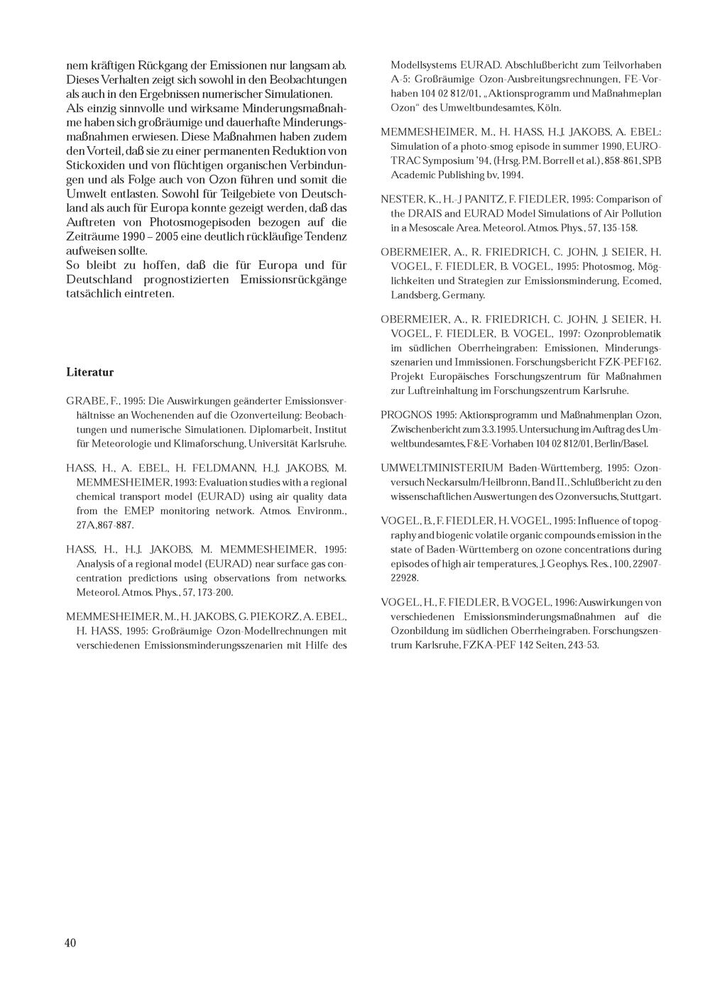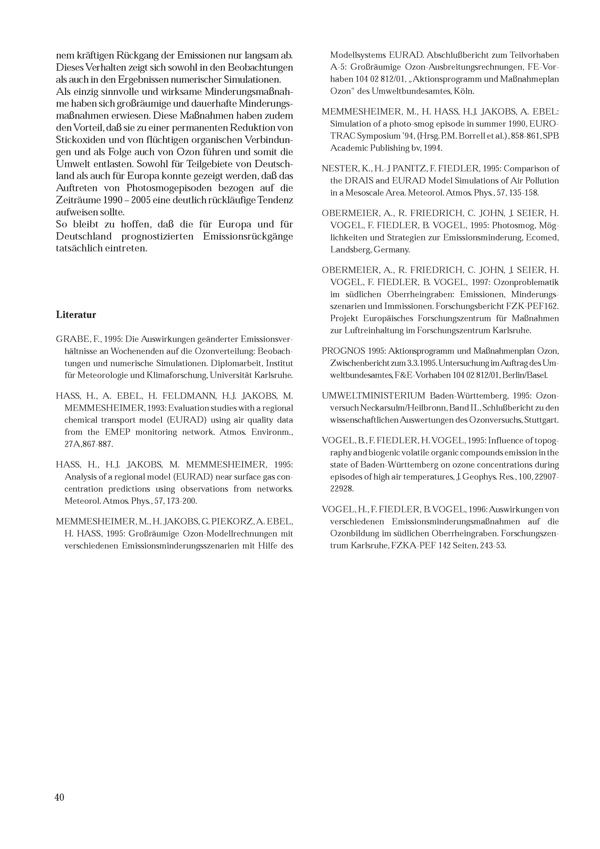 10. K. Nester, H. J. Jakobs, M. Memmesheimer, B. Vogel, F. Fiedler: Modellierung von Ozon auf der regionalen Skala