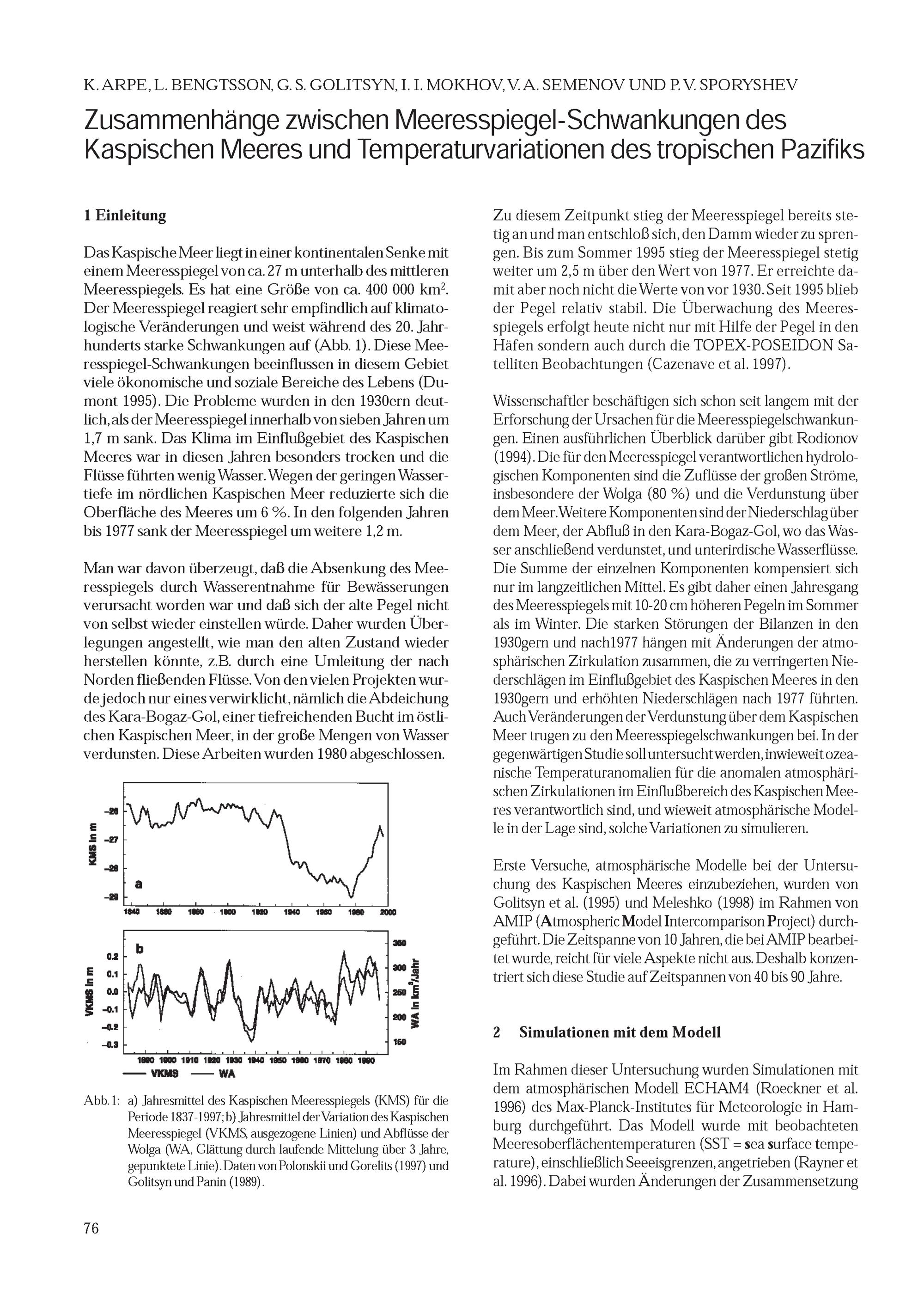 K. Arpe, L. Bengtsson, G. S. Golitsyn, I. I. Mokhov, V. A. Semenov und P. V. Sporyshev: Zusammenhänge zwischen Meeresspiegel-Schwankungen des Kaspischen Meeres und Temperaturvariationen des tropischen Pazifiks