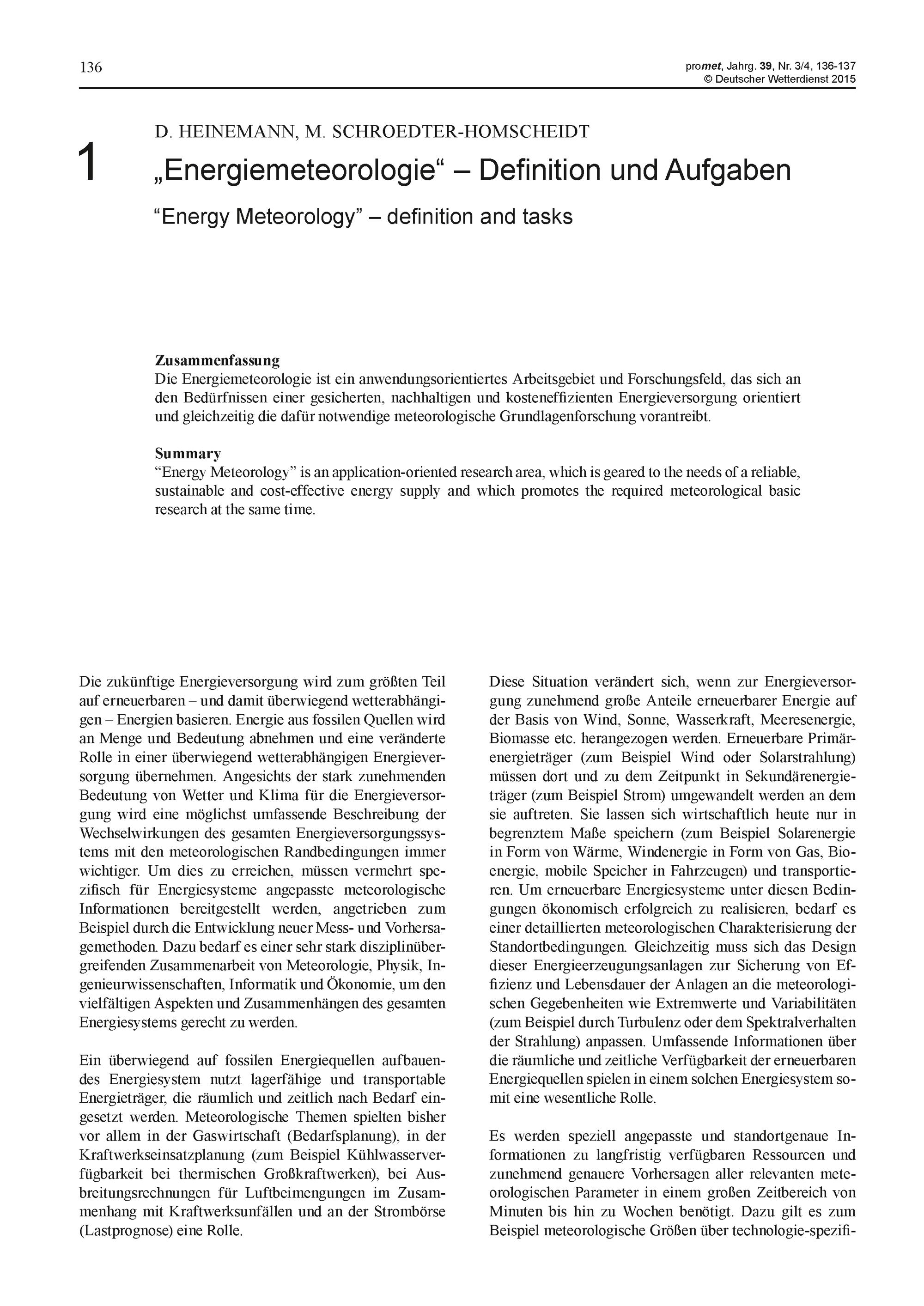 Meteorologische Aspekte der Nutzung erneuerbarer Energien / fachliche Redaktion: D. Heinemann, Oldenburg ; Fachliche Durchsicht: G. Tetzlaff, Leipzig