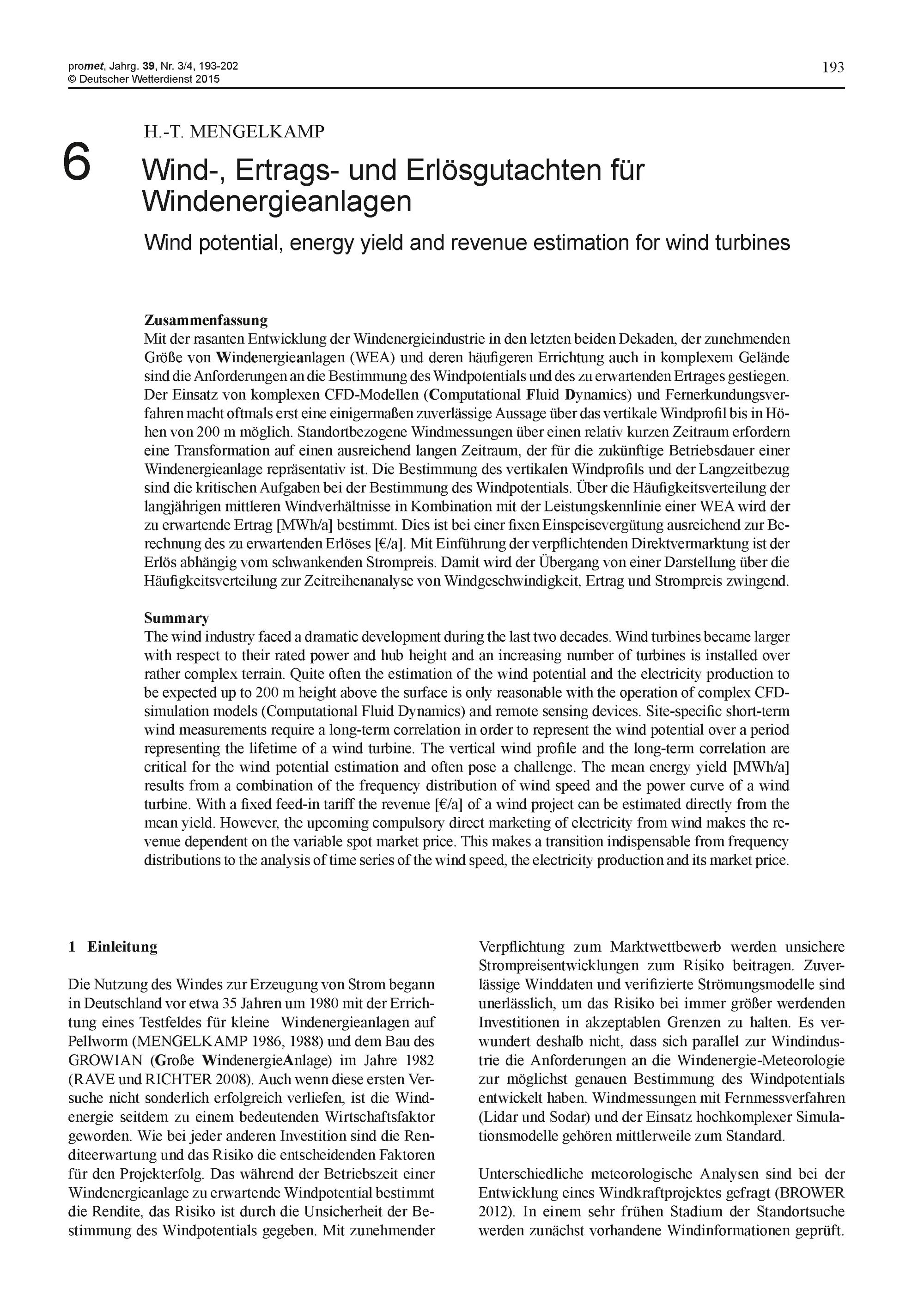 Meteorologische Aspekte der Nutzung erneuerbarer Energien / fachliche Redaktion: D. Heinemann, Oldenburg ; Fachliche Durchsicht: G. Tetzlaff, Leipzig