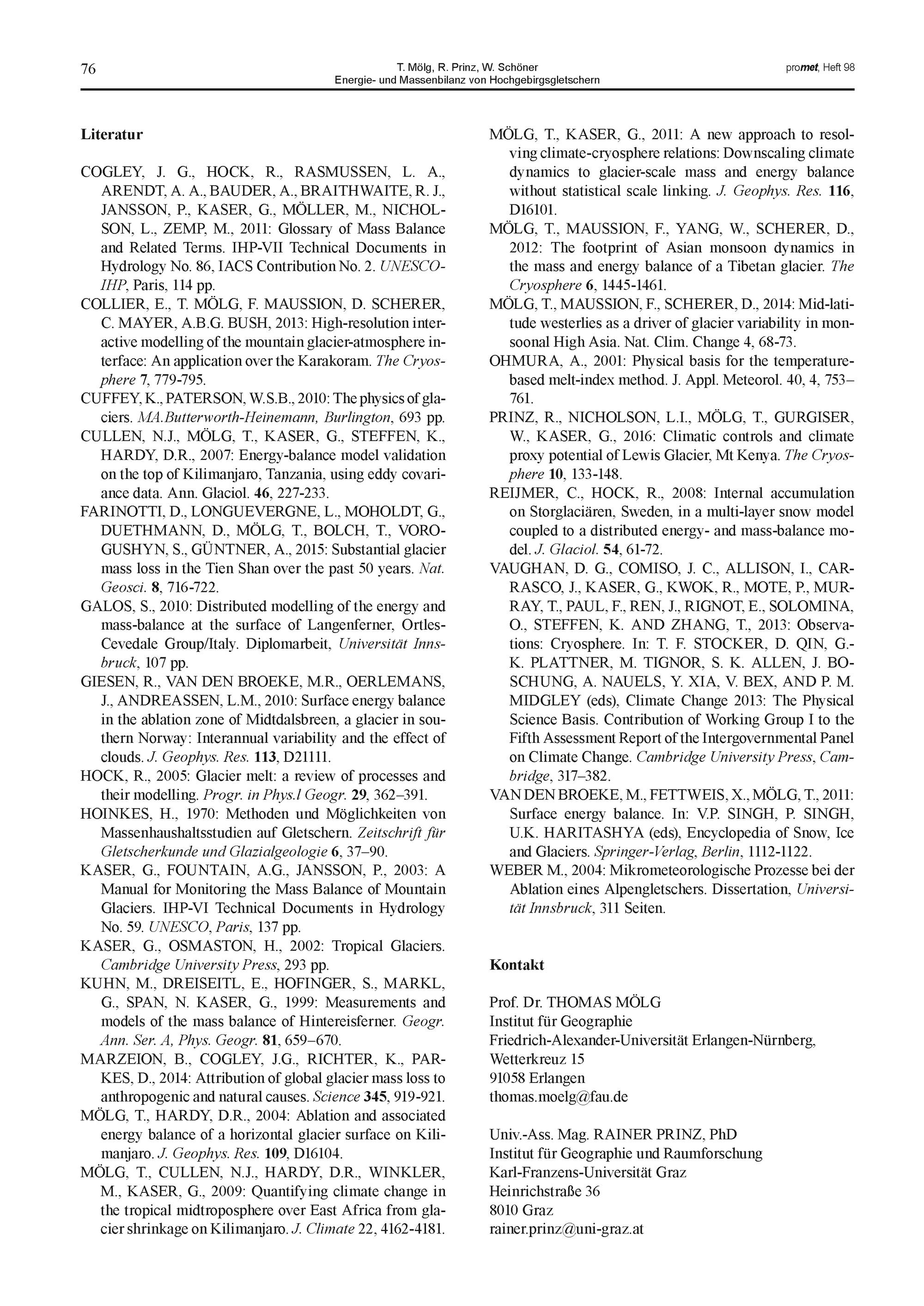 Hochgebirgsmeteorologie und Glaziologie / Herausgeber Deutscher Wetterdienst. Fachliche Redaktion: Prof. Dr. Wolfgang Schöner, Graz. Fachliche Durchsicht: Prof. Dr. Mathias Rotach, Innsbruck