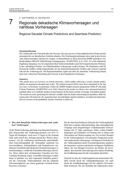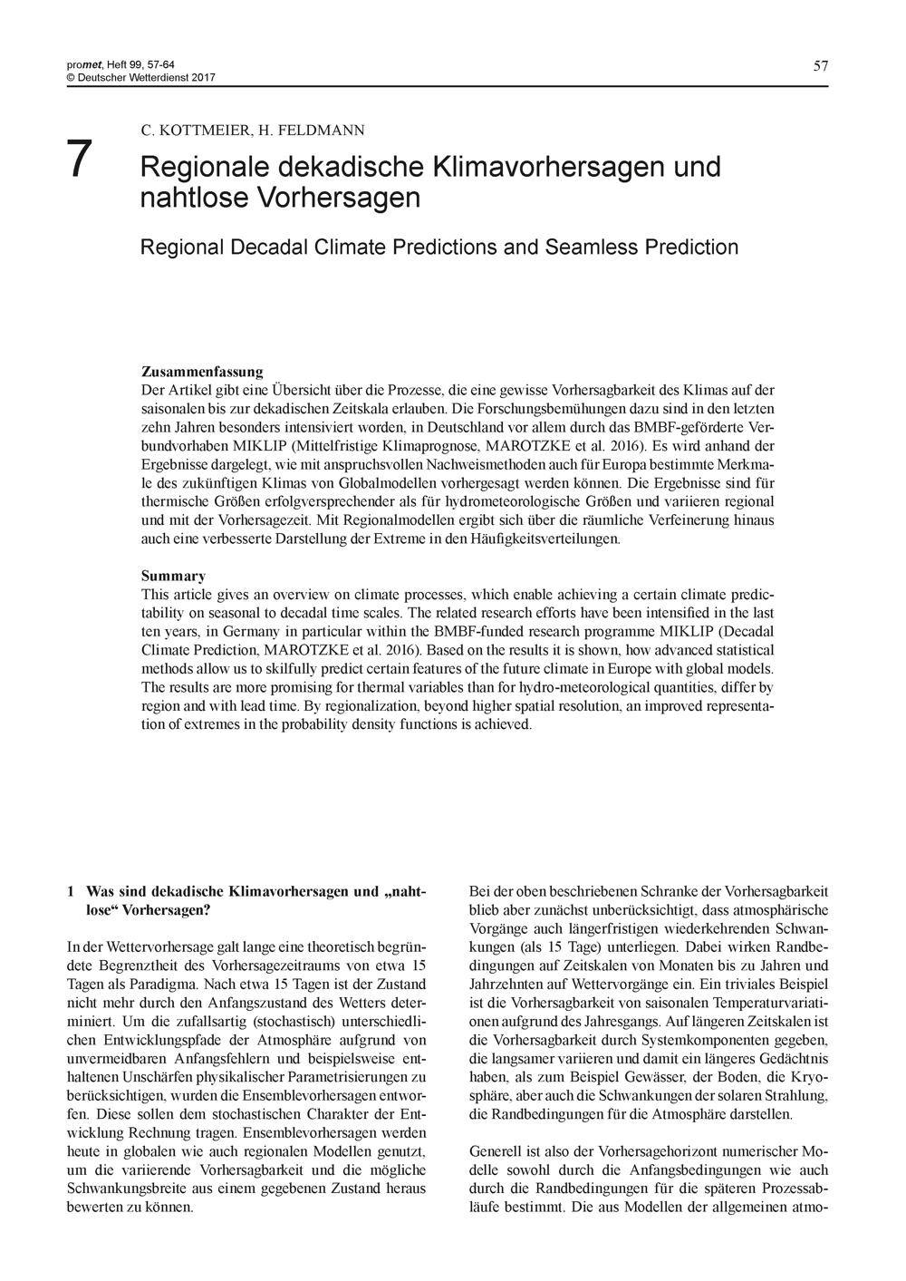 7. C. Kottmeier, H. Feldmann: Regionale dekadische Klimavorhersagen und nahtlose Vorhersagen