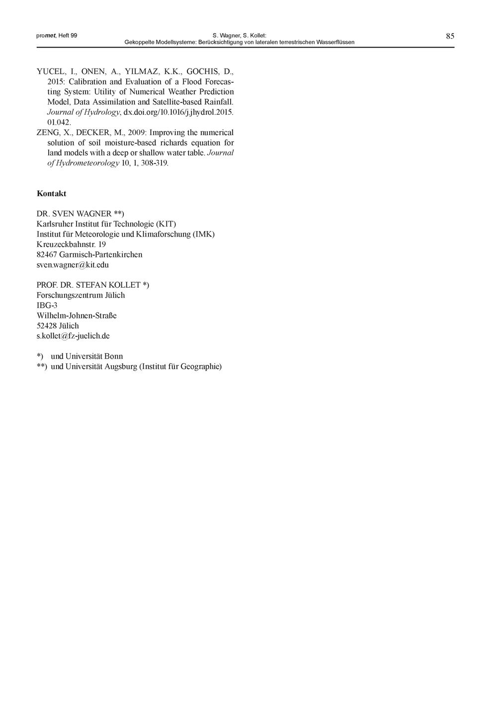 9. S. Wagner, S. Kollet: Gekoppelte Modellsysteme: Berücksichtigung von lateralen terrestrischen Wasserflüssen