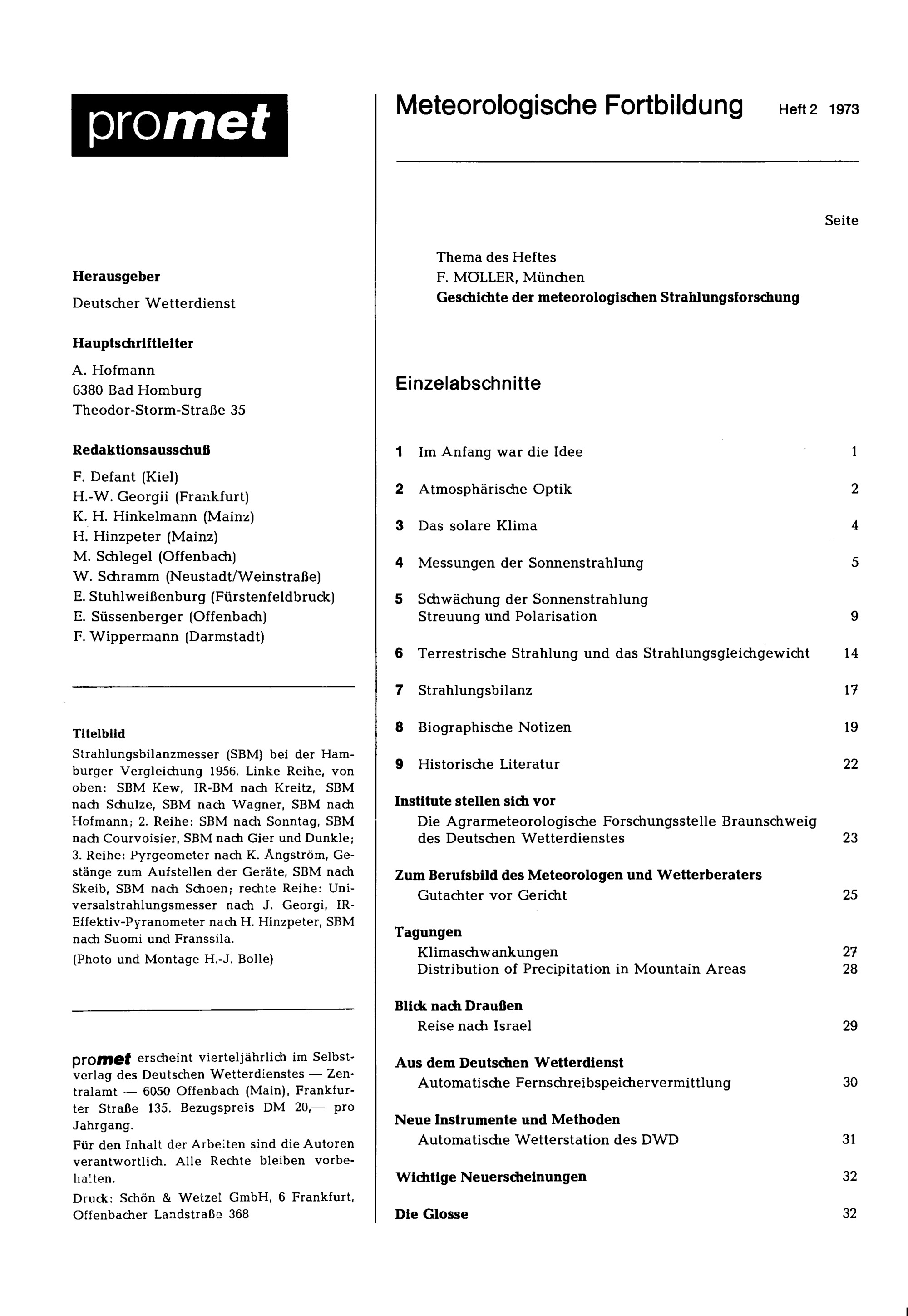Geschichte der meteorologischen Strahlungsforschung / F. Möller, München