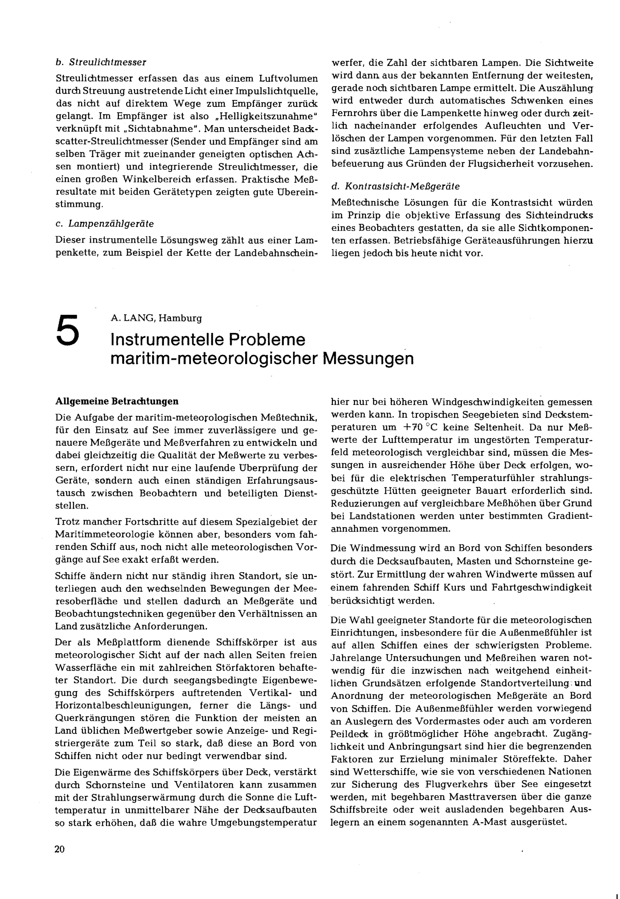 5. A. Lang: Instrumentelle Probleme maritim-meteorologischer Messungen