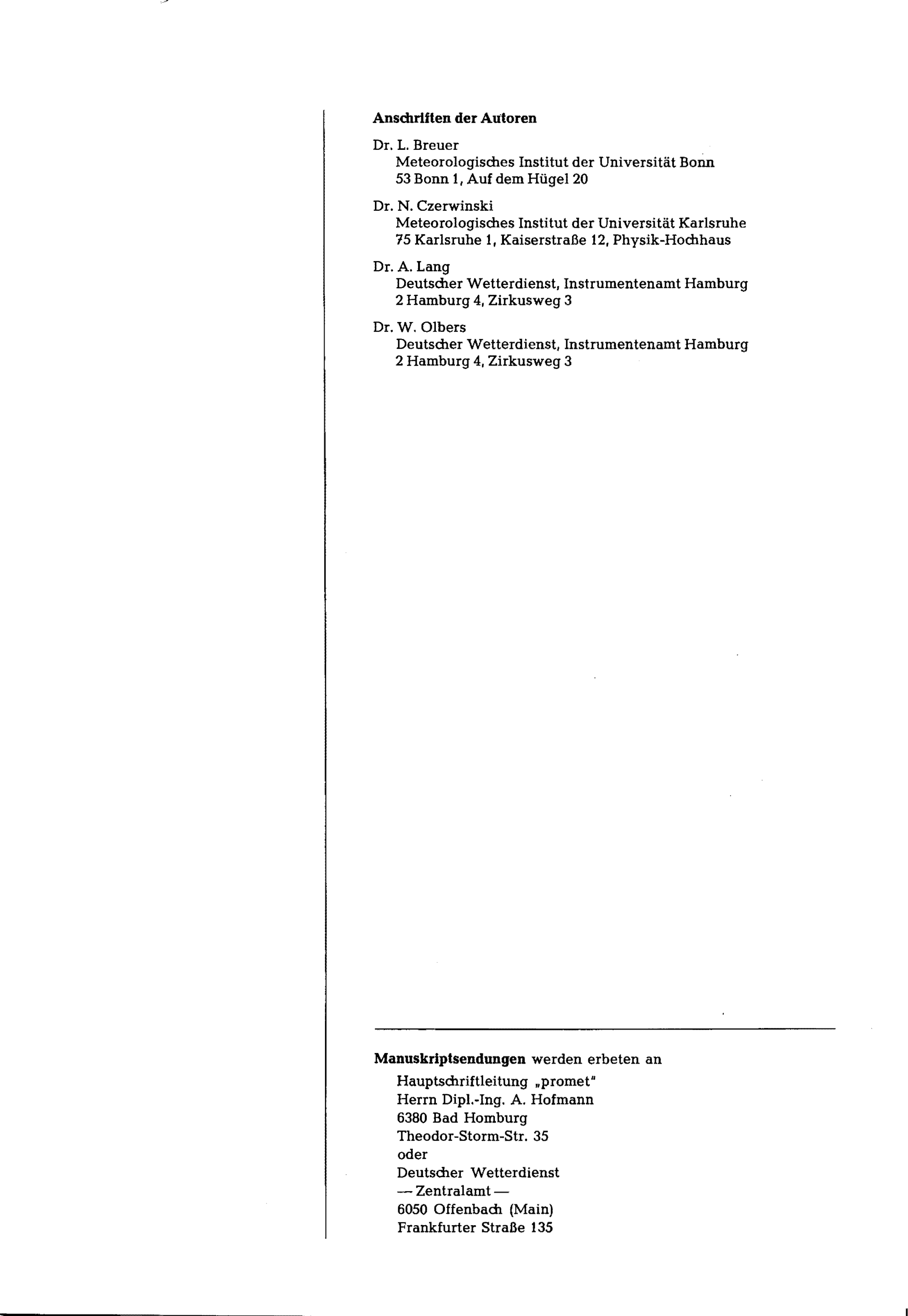 5. A. Lang: Instrumentelle Probleme maritim-meteorologischer Messungen