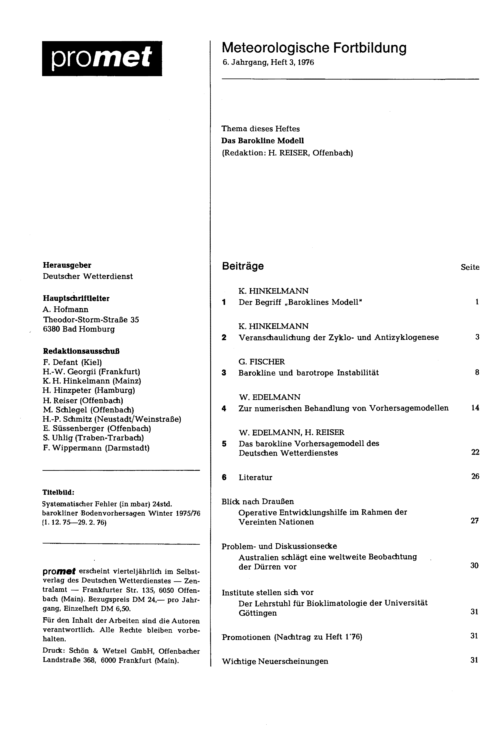 5. W. Edelmann und H. Reiser: Das barokline Vorhersagemodell des Deutschen Wetterdienstes