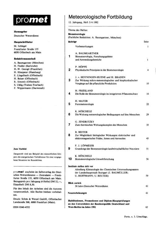10. K. Höschele: Biometeorologie und Umweltforschung
