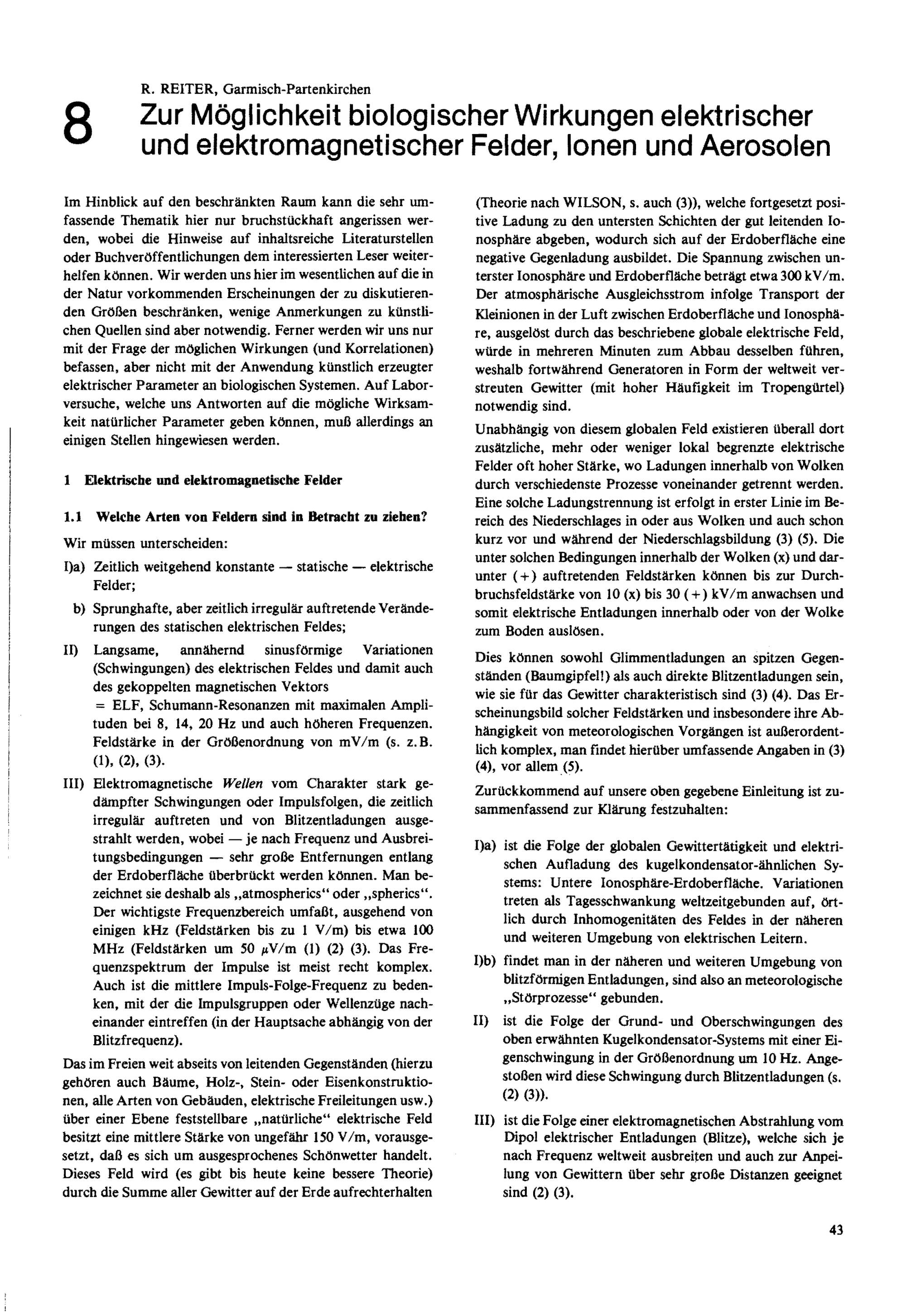 8. R. Reiter: Zur Möglichkeit biologischer Wirkungen elektrischer und elektromagnetischer Felder, Ionen und Aerosolen