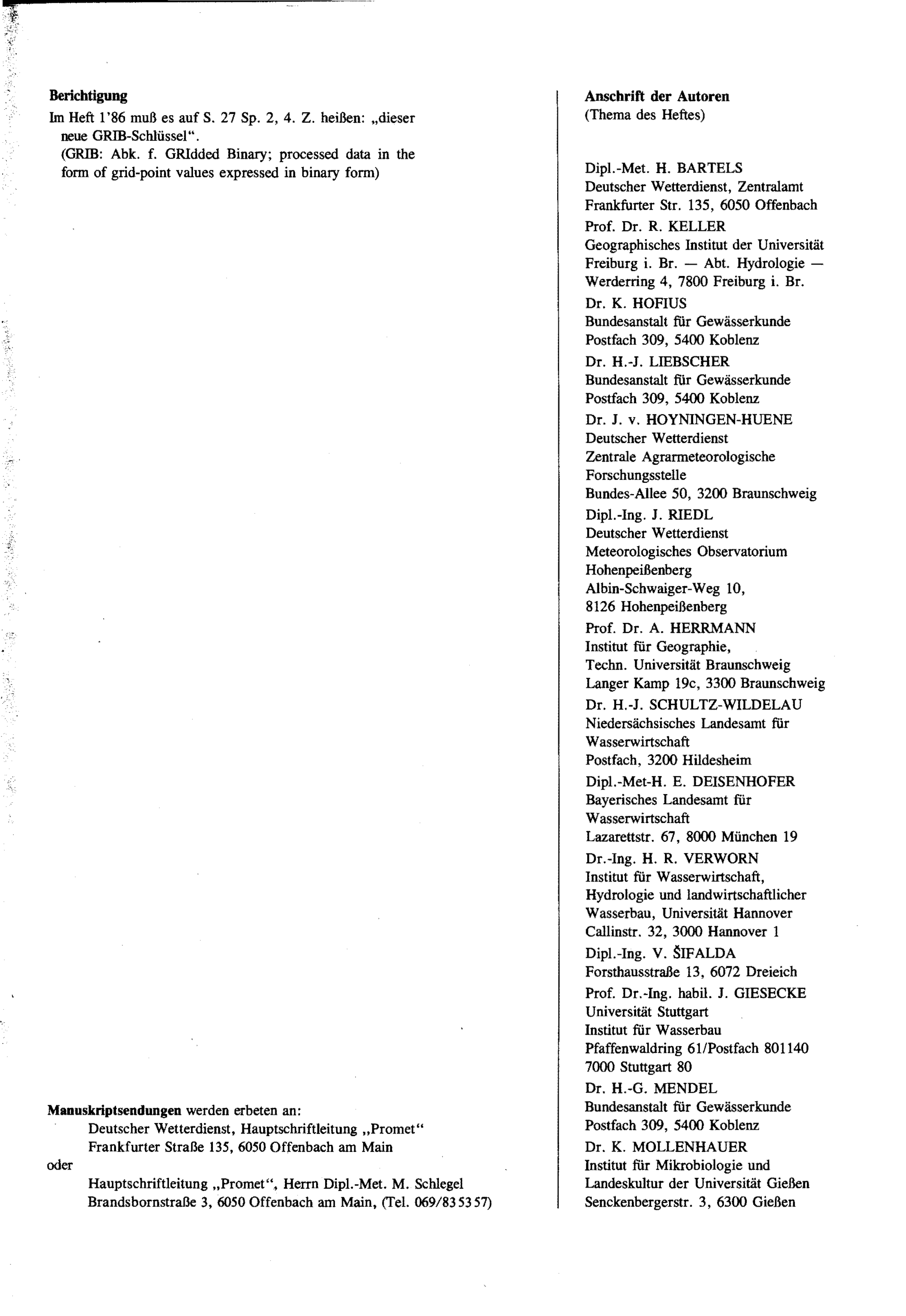 Berichtigung, Anschrift der Autoren