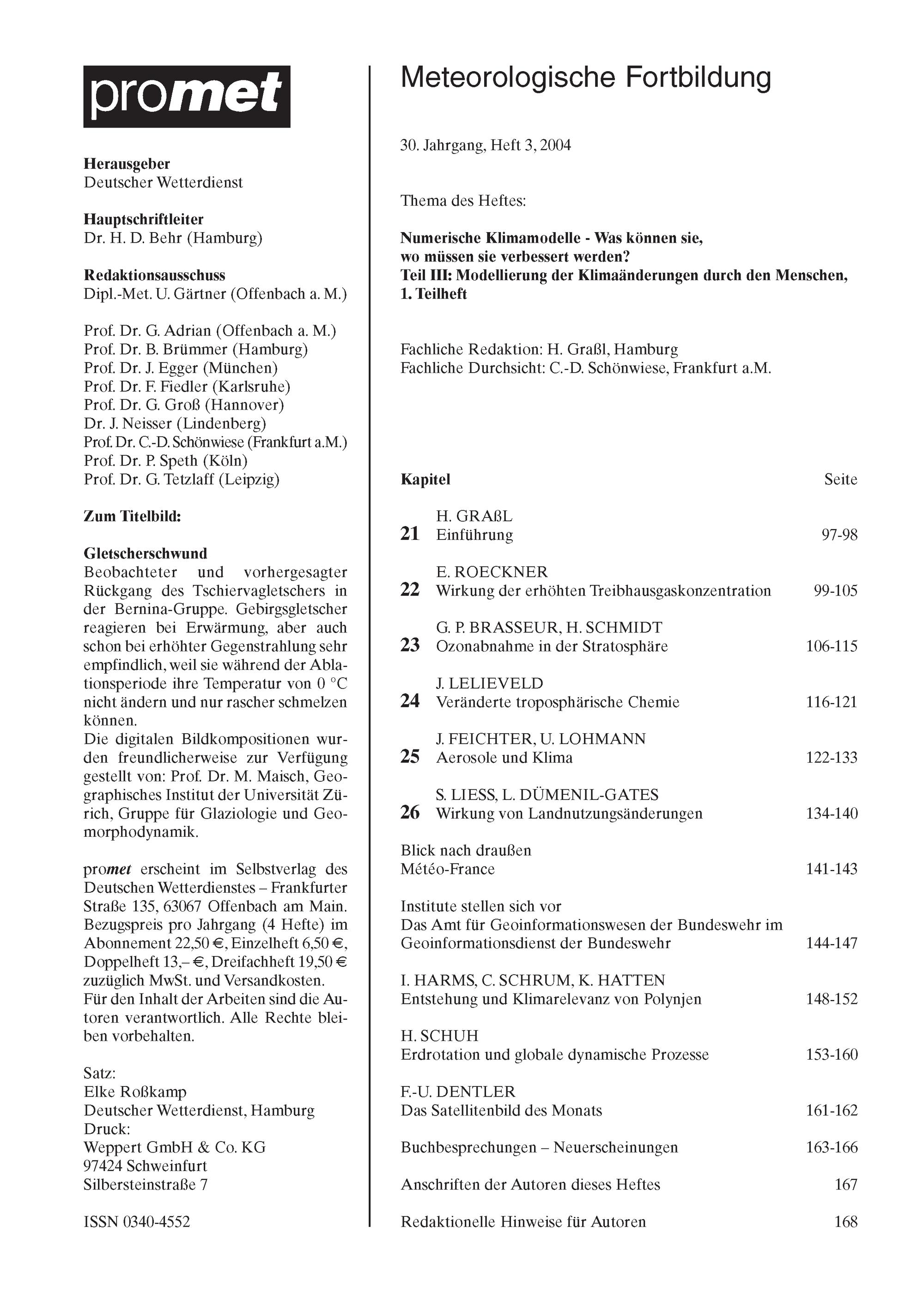 3, 1 (2004) Modellierung der Klimaänderungen durch den Menschen, 1. Teilheft / fachliche Redaktion: H. Graßl, Hamburg; fachliche Durchsicht: C.-D. Schönwiese, Frankfurt a. M.