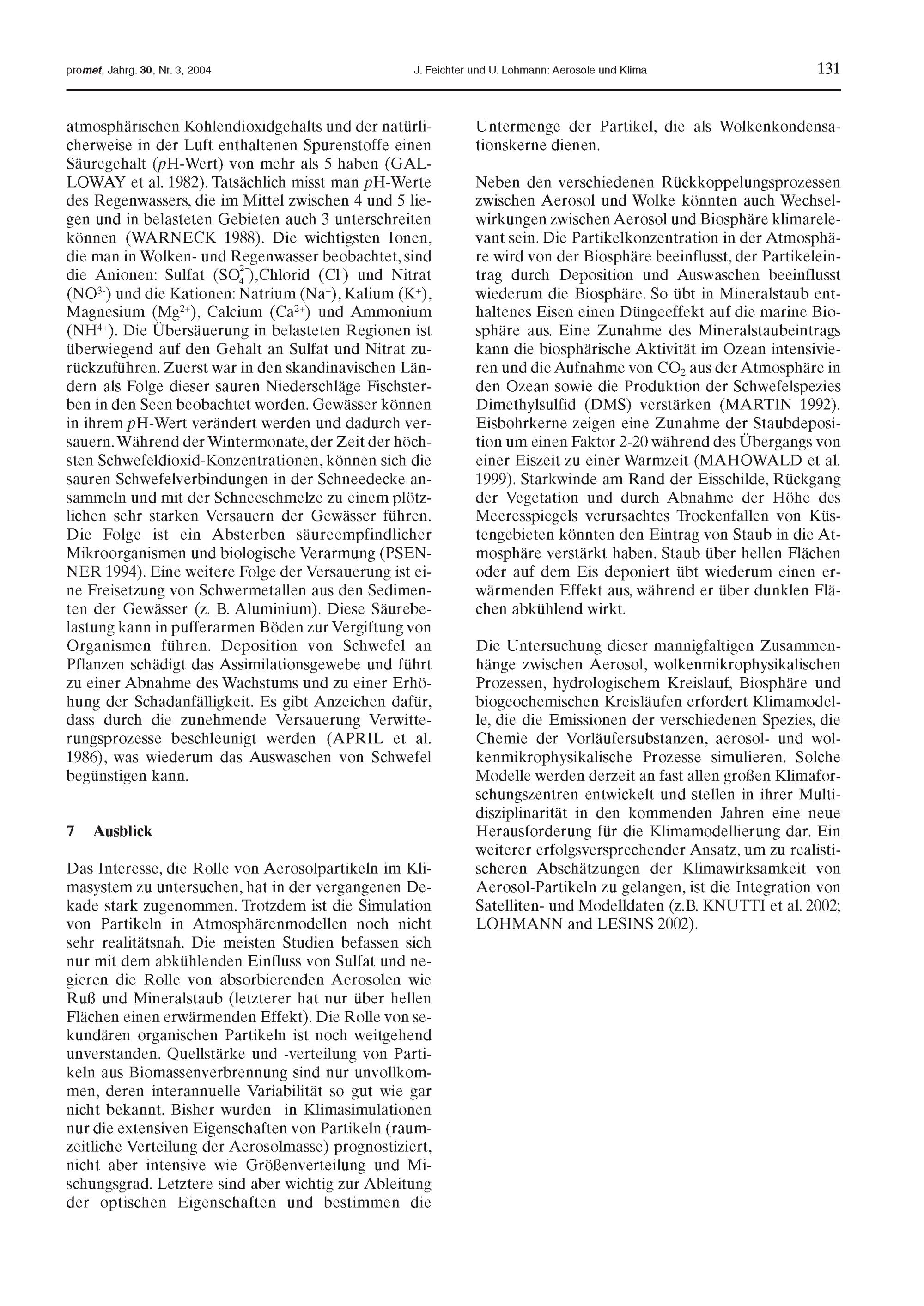 25. J. Feichter, U. Lohmann: Aerosole und Klima