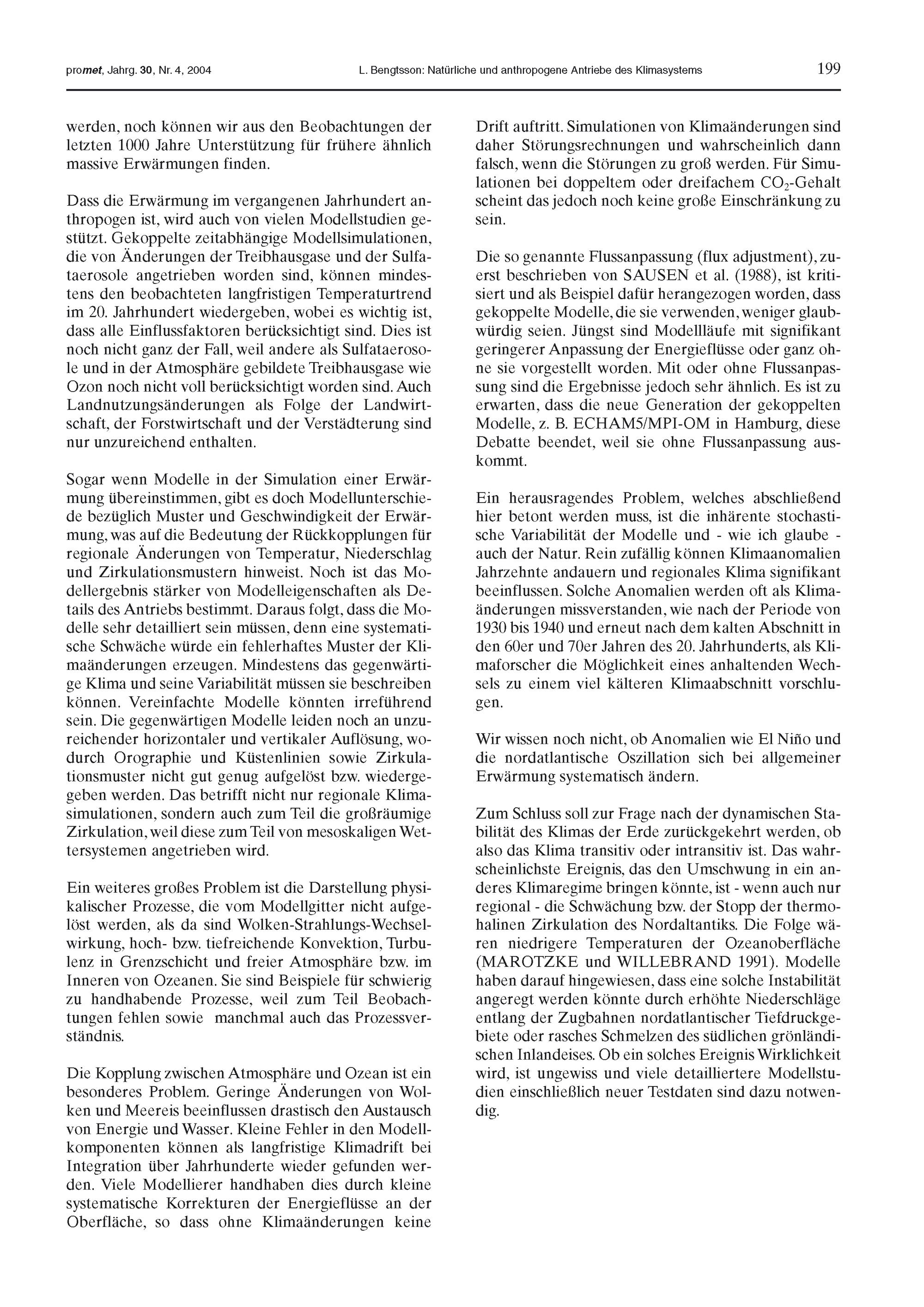 3, 2 (2004) Modellierung der Klimaänderungen durch den Menschen, 2. Teilheft / fachliche Redaktion: H. Graßl, Hamburg; fachliche Durchsicht: C.-D. Schönwiese, Frankfurt a. M.