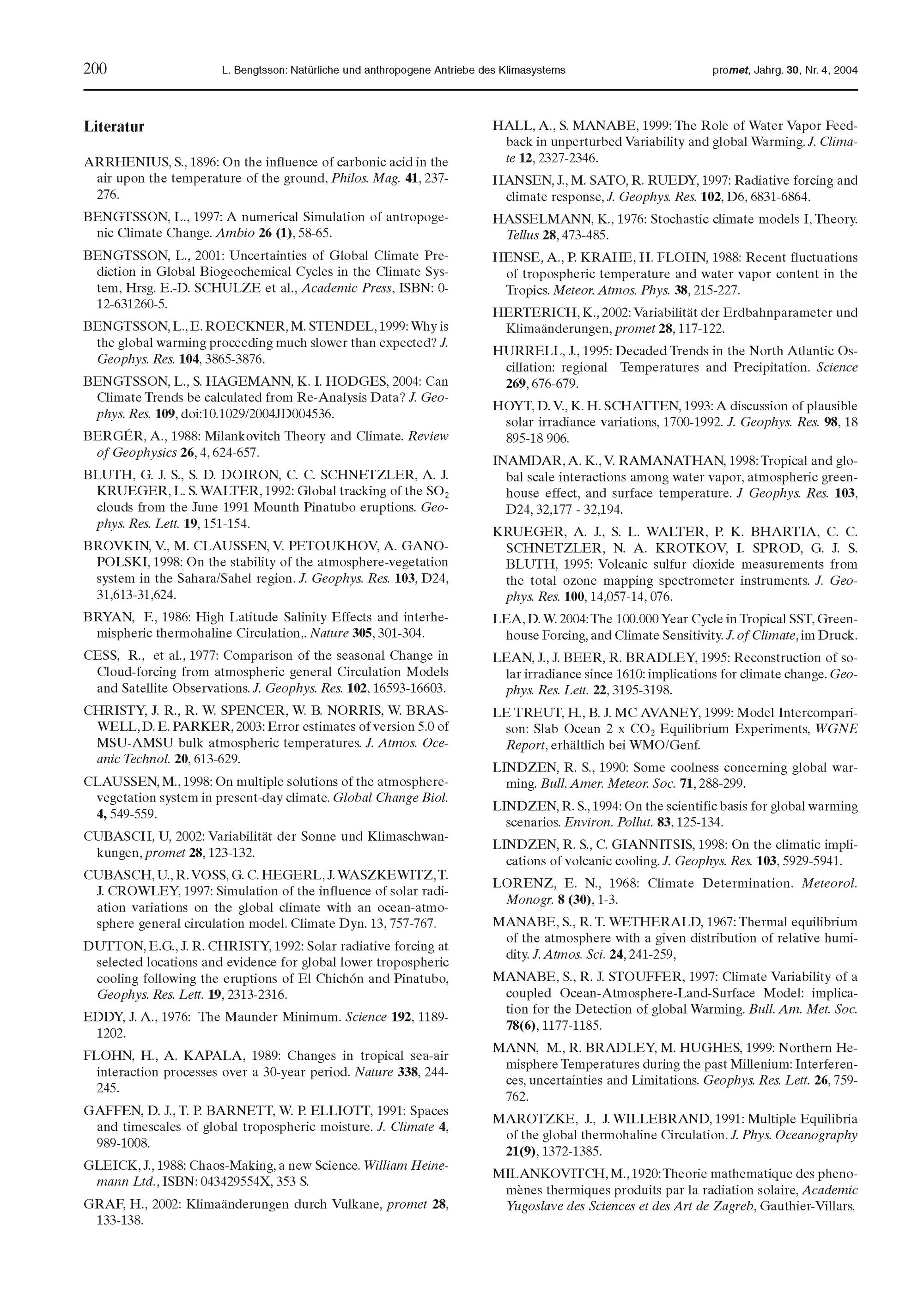 3, 2 (2004) Modellierung der Klimaänderungen durch den Menschen, 2. Teilheft / fachliche Redaktion: H. Graßl, Hamburg; fachliche Durchsicht: C.-D. Schönwiese, Frankfurt a. M.