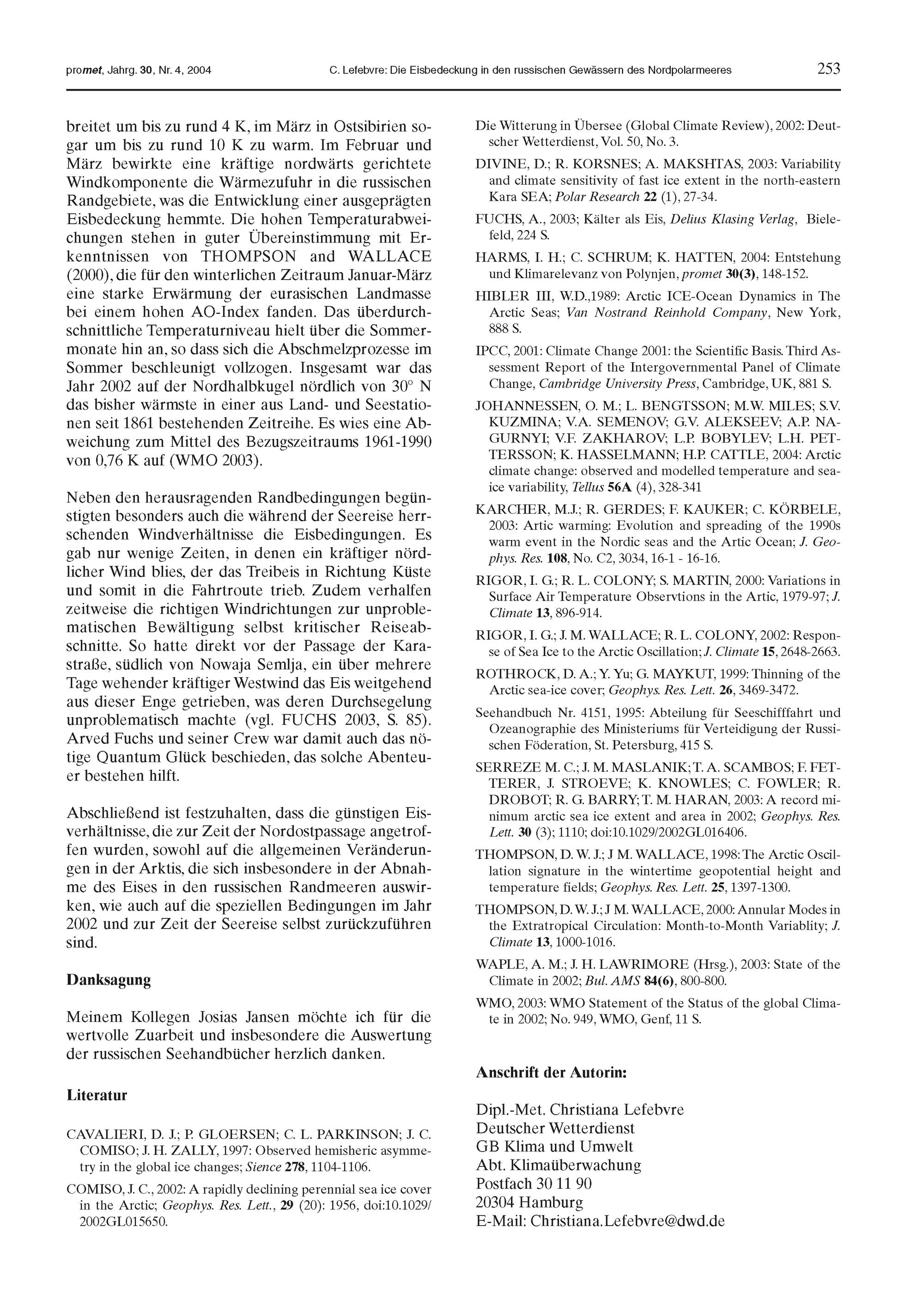 C. Lefebvre: Die Eisbedeckung in den russischen Gewässern des Nordpolarmeeres im Allgemeinen und 2002 zur Zeit der Durchsegelung der Nordostpassage von Arved Fuchs
