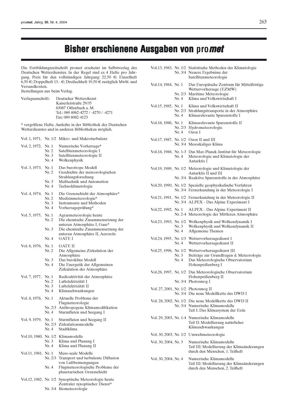 3, 2 (2004) Modellierung der Klimaänderungen durch den Menschen, 2. Teilheft / fachliche Redaktion: H. Graßl, Hamburg; fachliche Durchsicht: C.-D. Schönwiese, Frankfurt a. M.