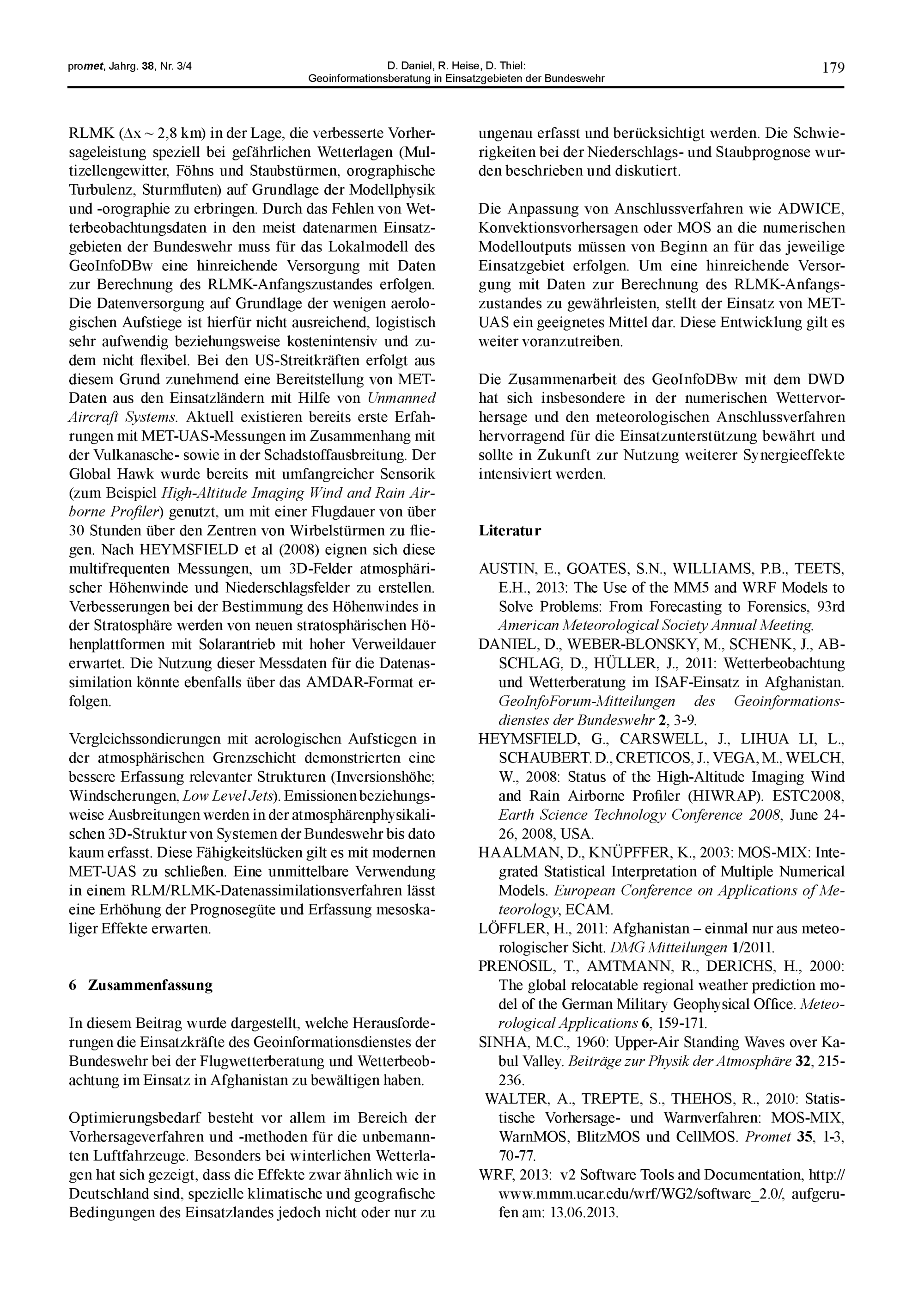 7. D. Daniel, R. Heise, D. Thiel: Geoinformationsberatung in Einsatzgebieten der Bundeswehr