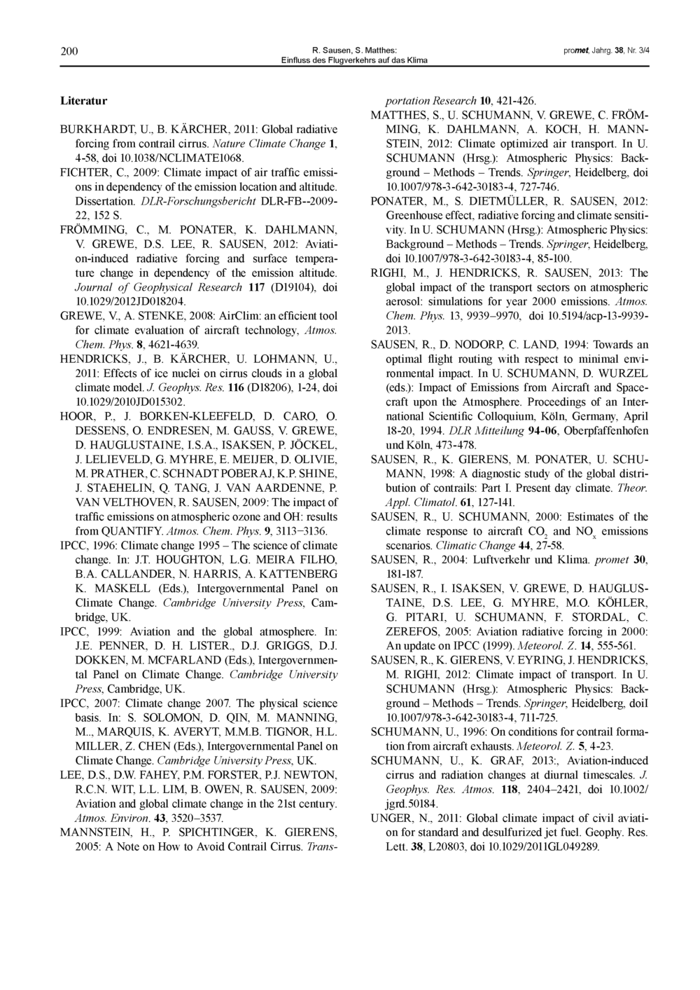 10. R. Sausen, S. Mattheis: Einfluss des Flugverkehrs auf das Klima