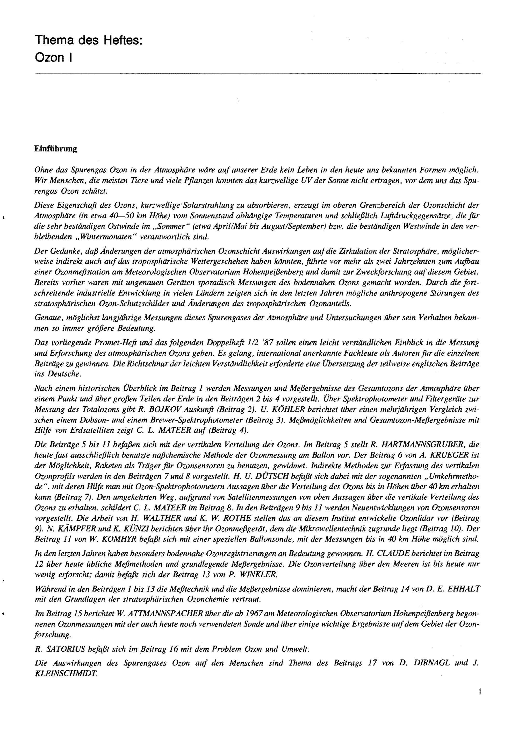 1 (1986) Ozon / fachliche Redaktion: W. Attmannspacher, Peiting