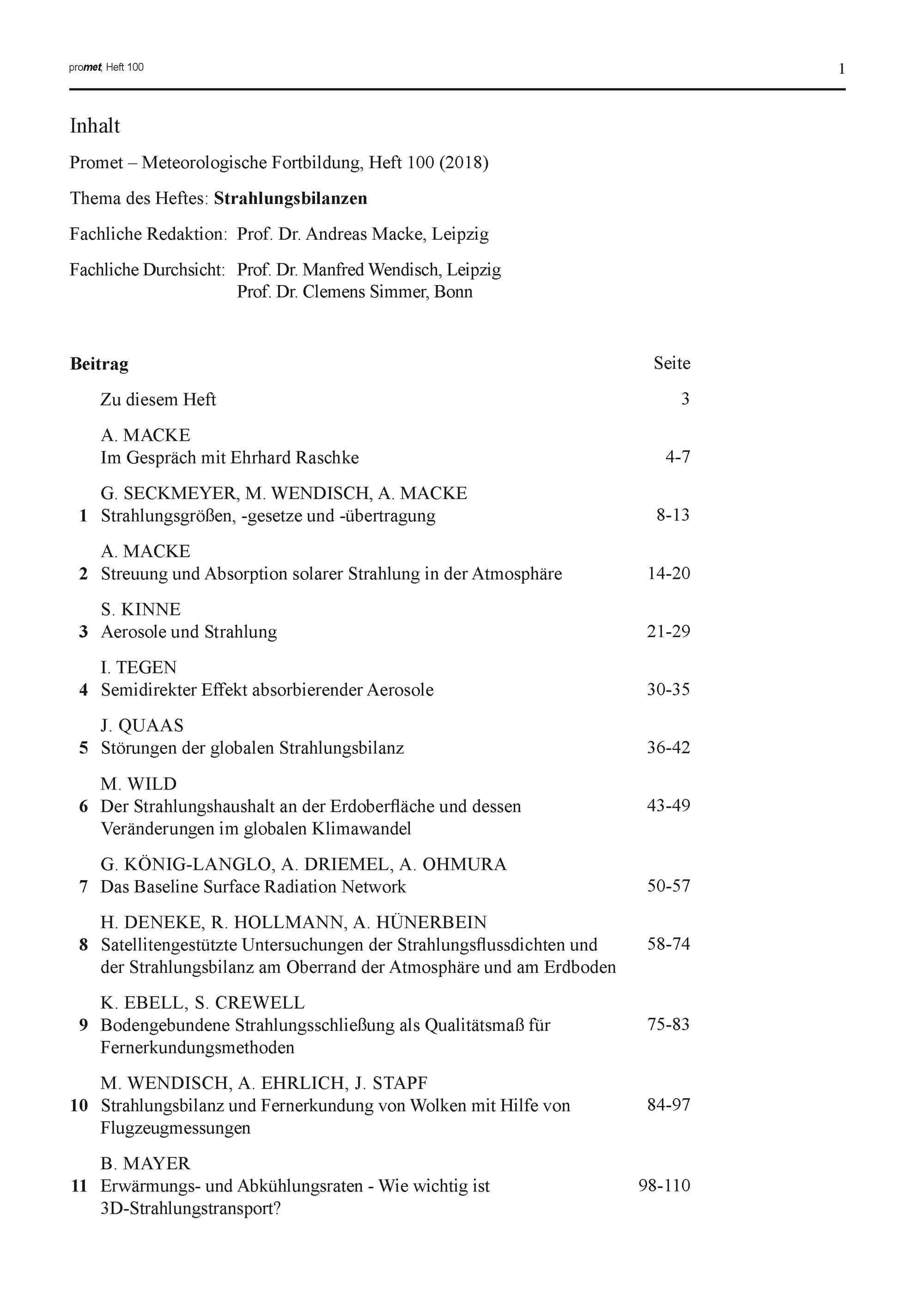 8. H. Deneke, R. Hollmann, A. Hünerbein: Satellitengestützte Untersuchungen der Strahlungsflussdichten und der Strahlungsbilanz am Oberrand der Atmosphäre und am Erdboden