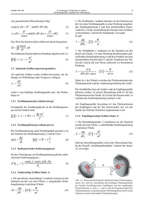 1. G. Seckmeyer, M. Wendisch, A. Macke: Strahlungsgrößen, -gesetze und -übertrag...