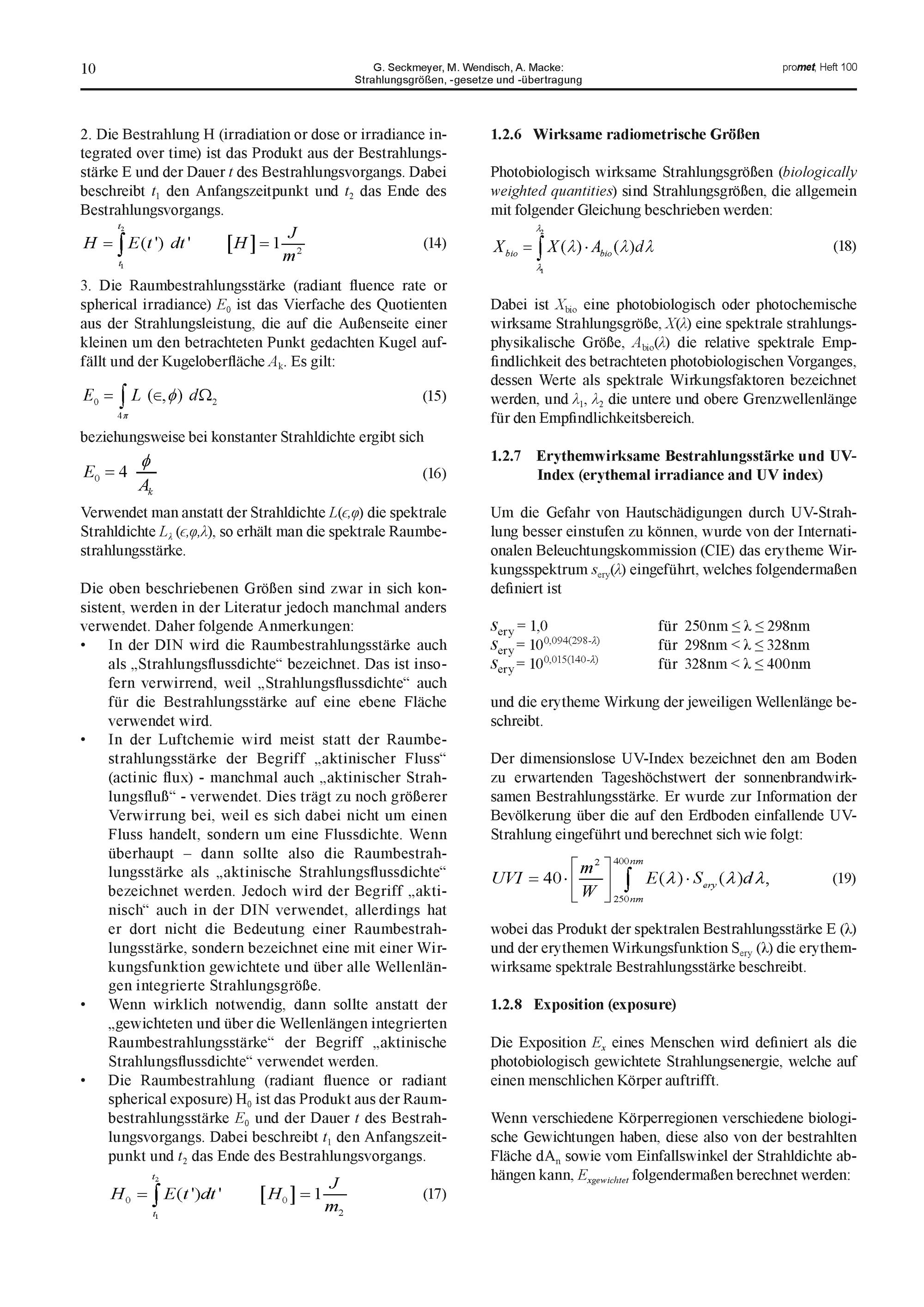 1. G. Seckmeyer, M. Wendisch, A. Macke: Strahlungsgrößen, -gesetze und -übertrag...