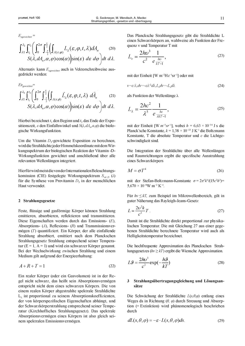 1. G. Seckmeyer, M. Wendisch, A. Macke: Strahlungsgrößen, -gesetze und -übertragung