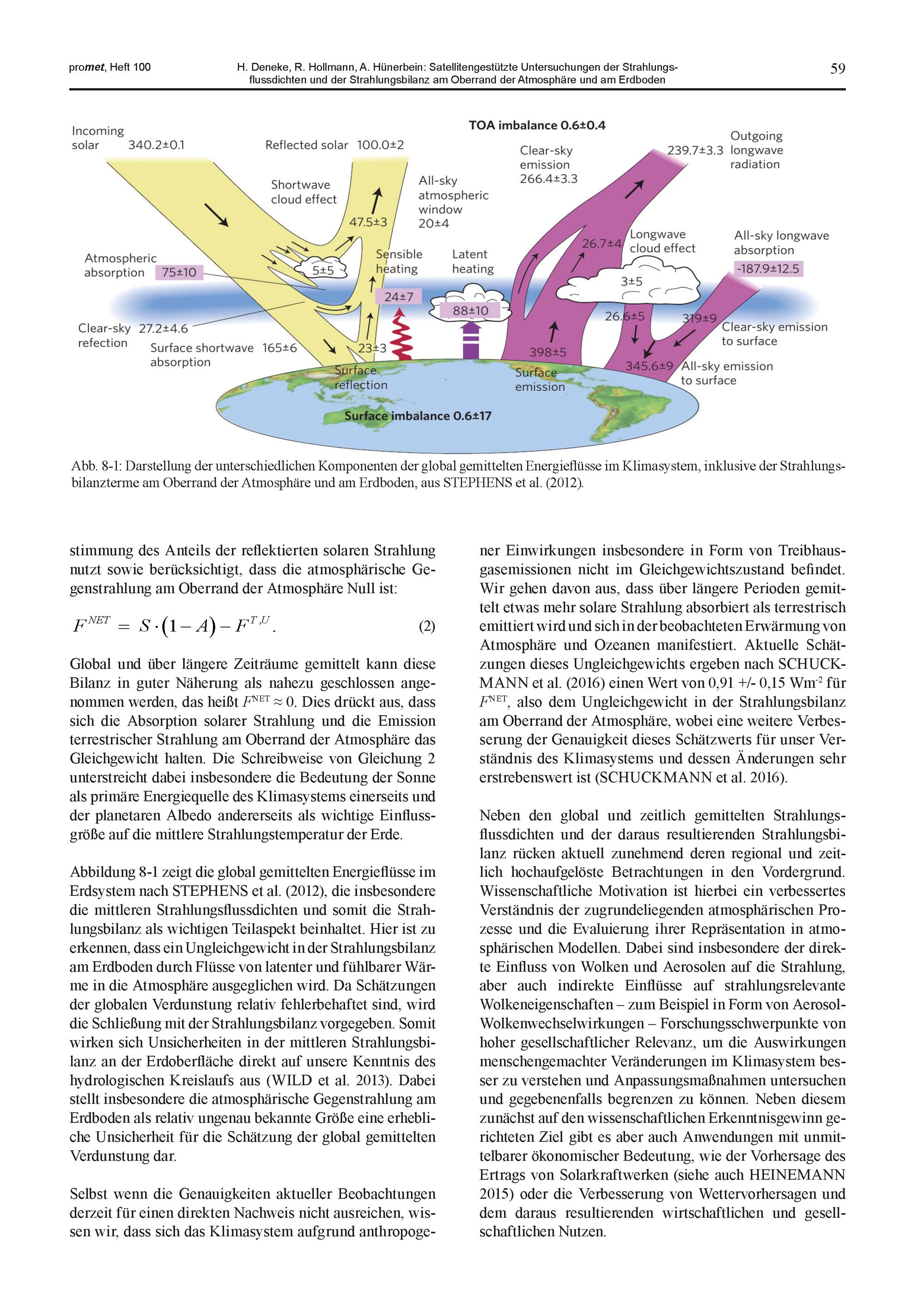 8. H. Deneke, R. Hollmann, A. Hünerbein: Satellitengestützte Untersuchungen der Strahlungsflussdichten und der Strahlungsbilanz am Oberrand der Atmosphäre und am Erdboden