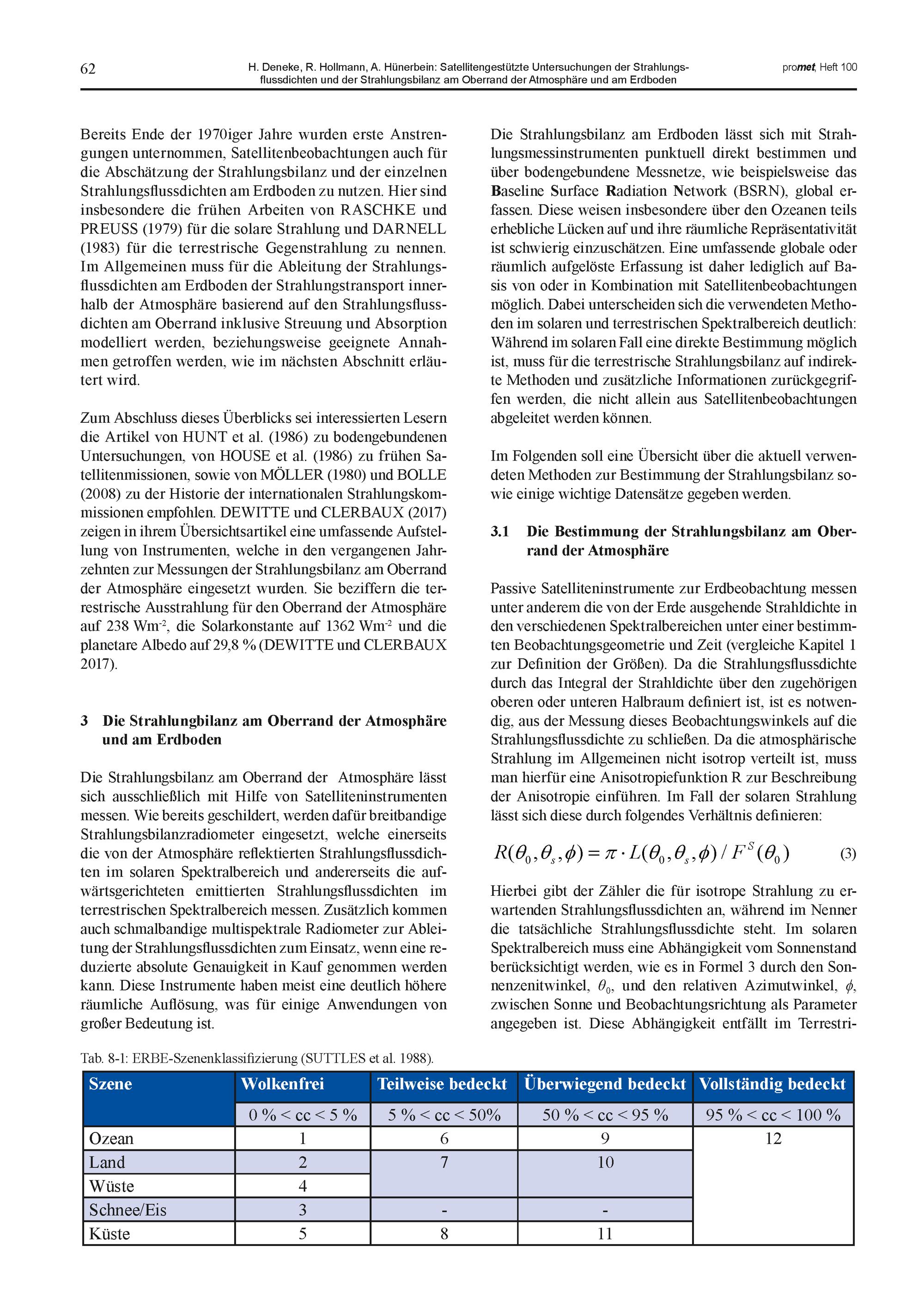 8. H. Deneke, R. Hollmann, A. Hünerbein: Satellitengestützte Untersuchungen der Strahlungsflussdichten und der Strahlungsbilanz am Oberrand der Atmosphäre und am Erdboden