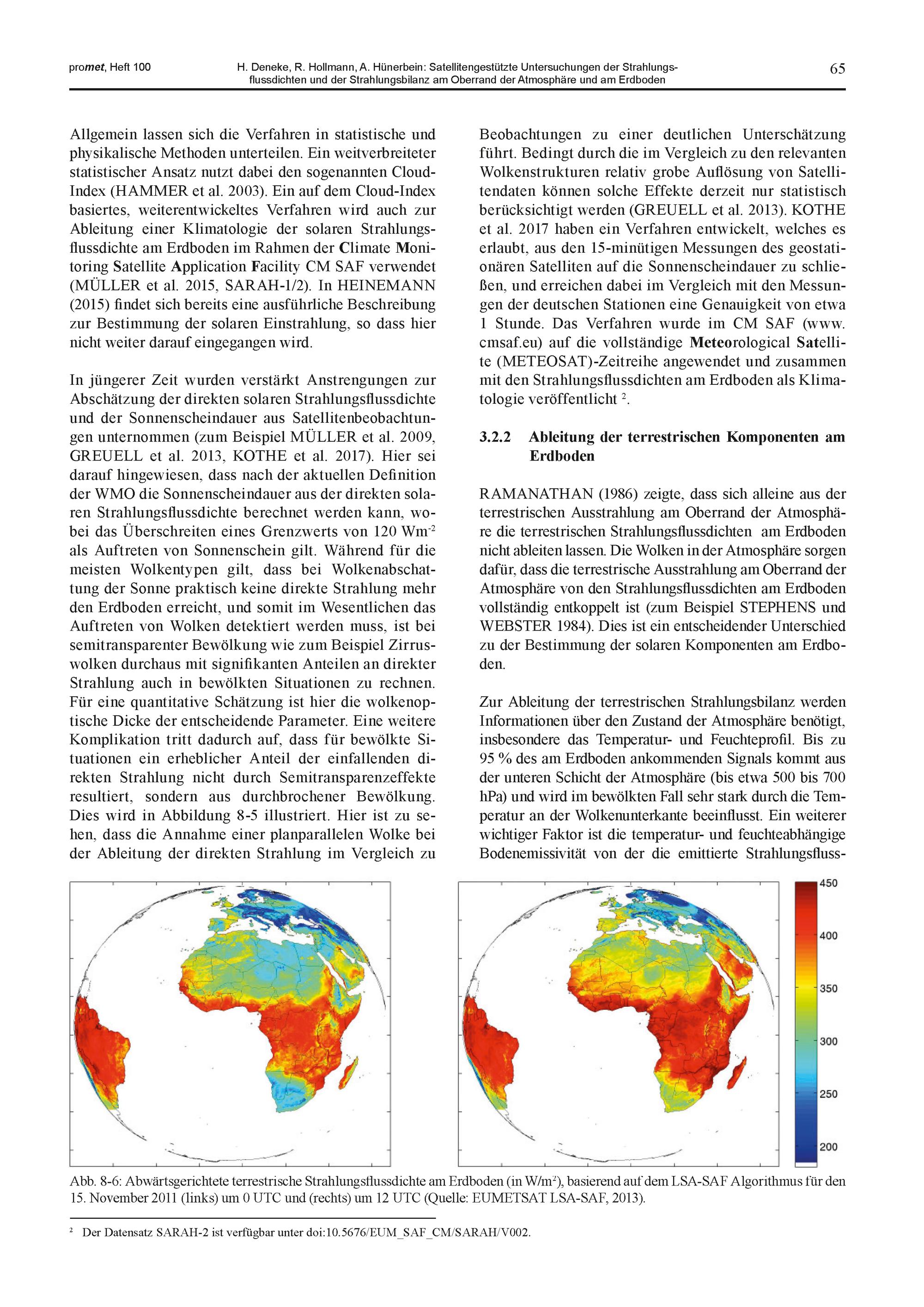 8. H. Deneke, R. Hollmann, A. Hünerbein: Satellitengestützte Untersuchungen der Strahlungsflussdichten und der Strahlungsbilanz am Oberrand der Atmosphäre und am Erdboden