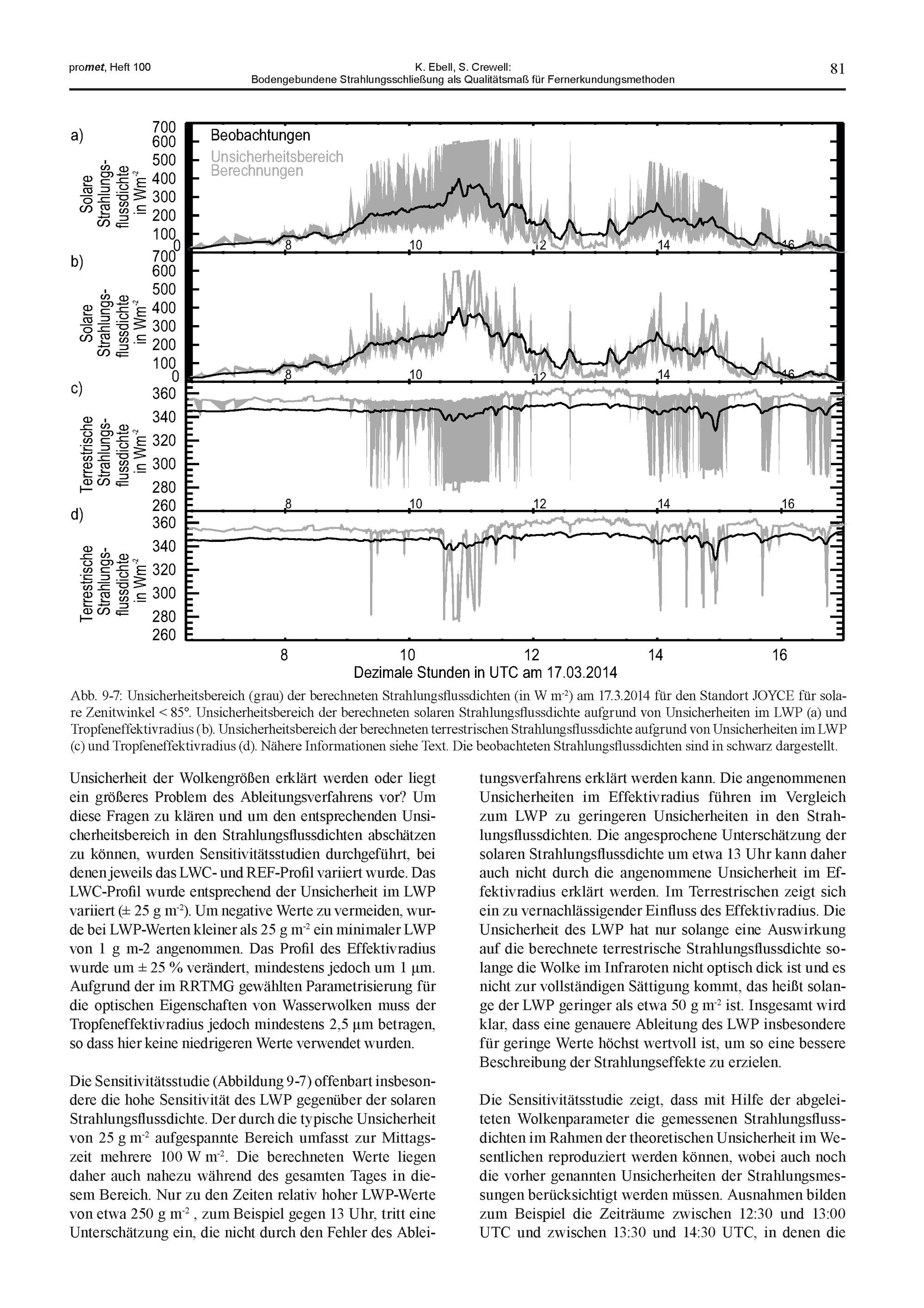 9. K. Ebell, S. Crewell: Bodengebundene Strahlungsschließung als Qualitätsmaß für...