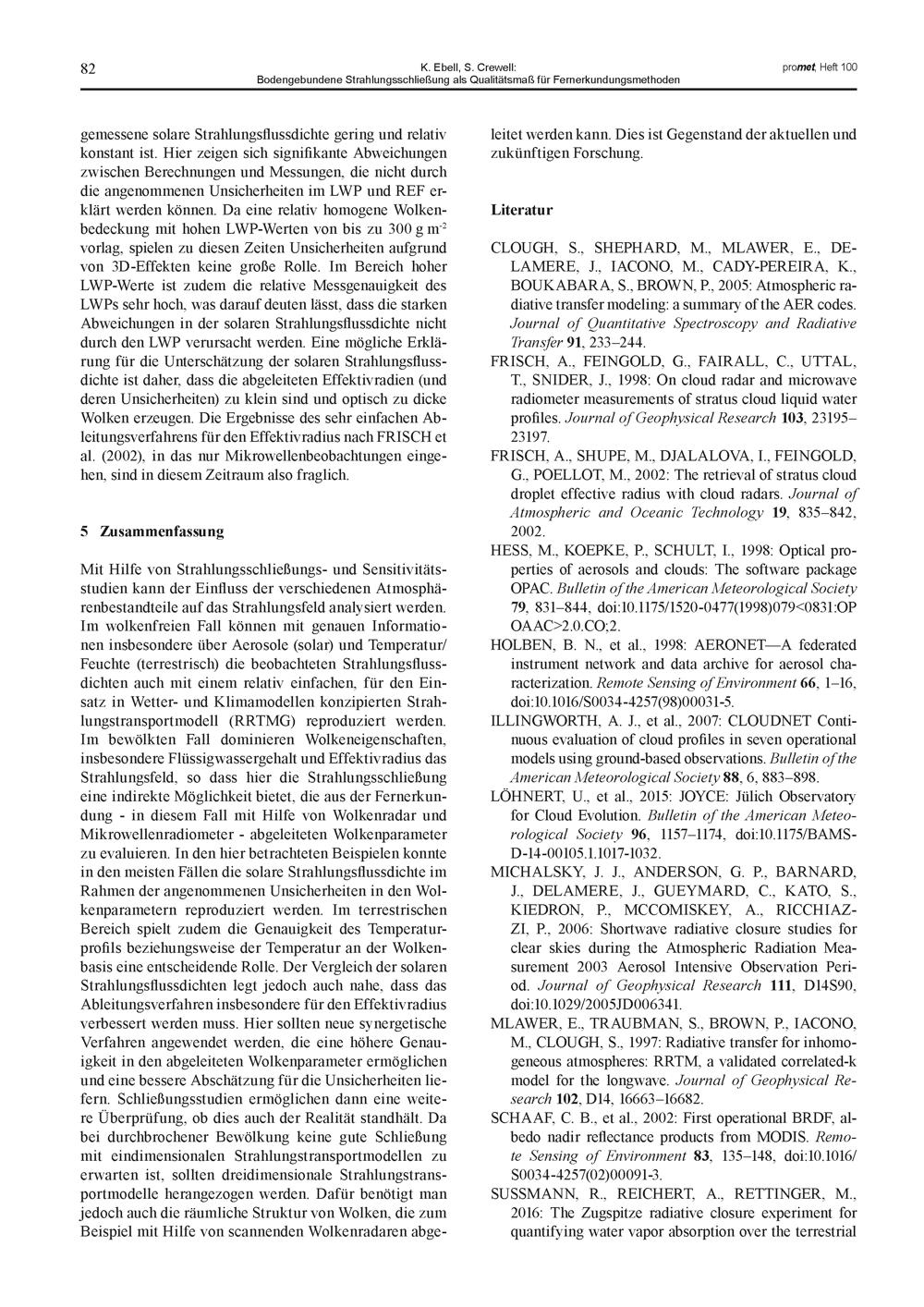 9. K. Ebell, S. Crewell: Bodengebundene Strahlungsschließung als Qualitätsmaß für Fernerkundungsmethoden
