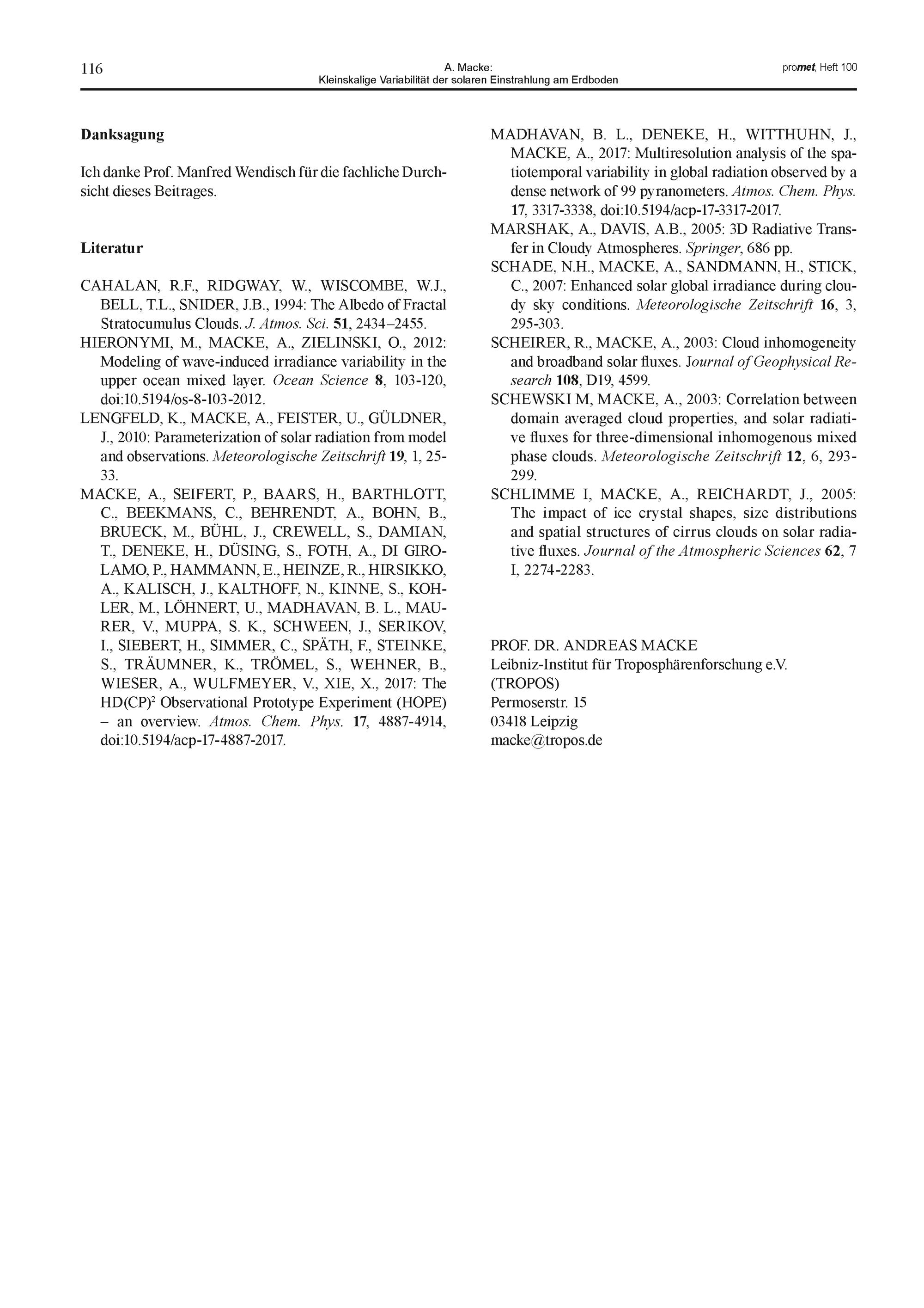 12. A. Macke: Kleinskalige Variabilität der solaren Einstrahlung am Erdboden