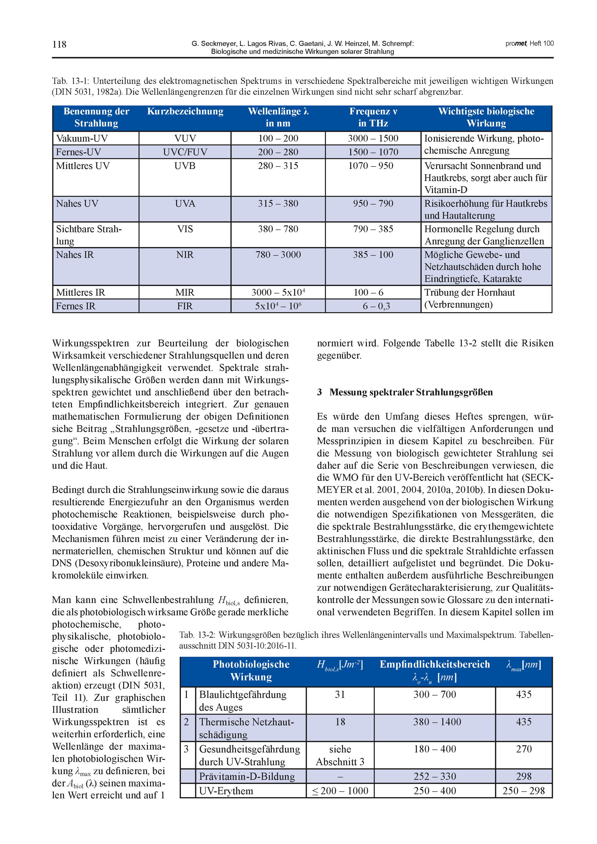 13. G. Seckmeyer, L. Lagos Rivas, C. Gaetani, J. W. Heinzel, M. Schrempf: Biologische...