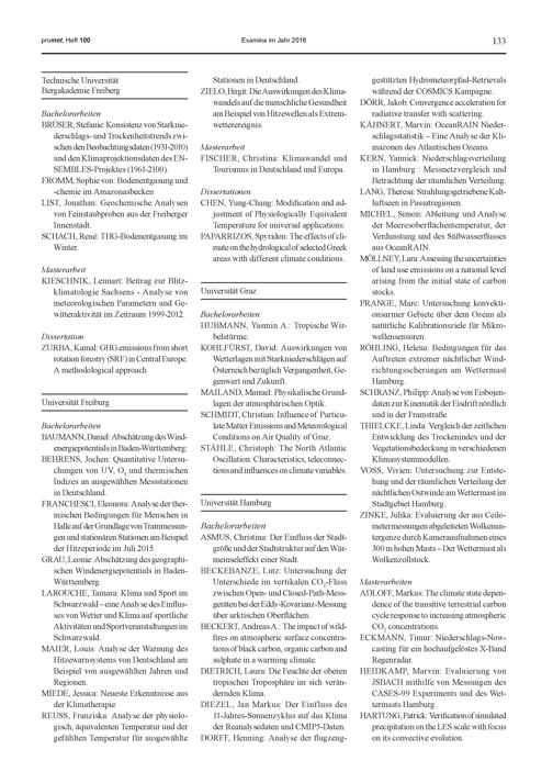 8. H. Deneke, R. Hollmann, A. Hünerbein: Satellitengestützte Untersuchungen der Strahlungsflussdichten und der Strahlungsbilanz am Oberrand der Atmosphäre und am Erdboden
