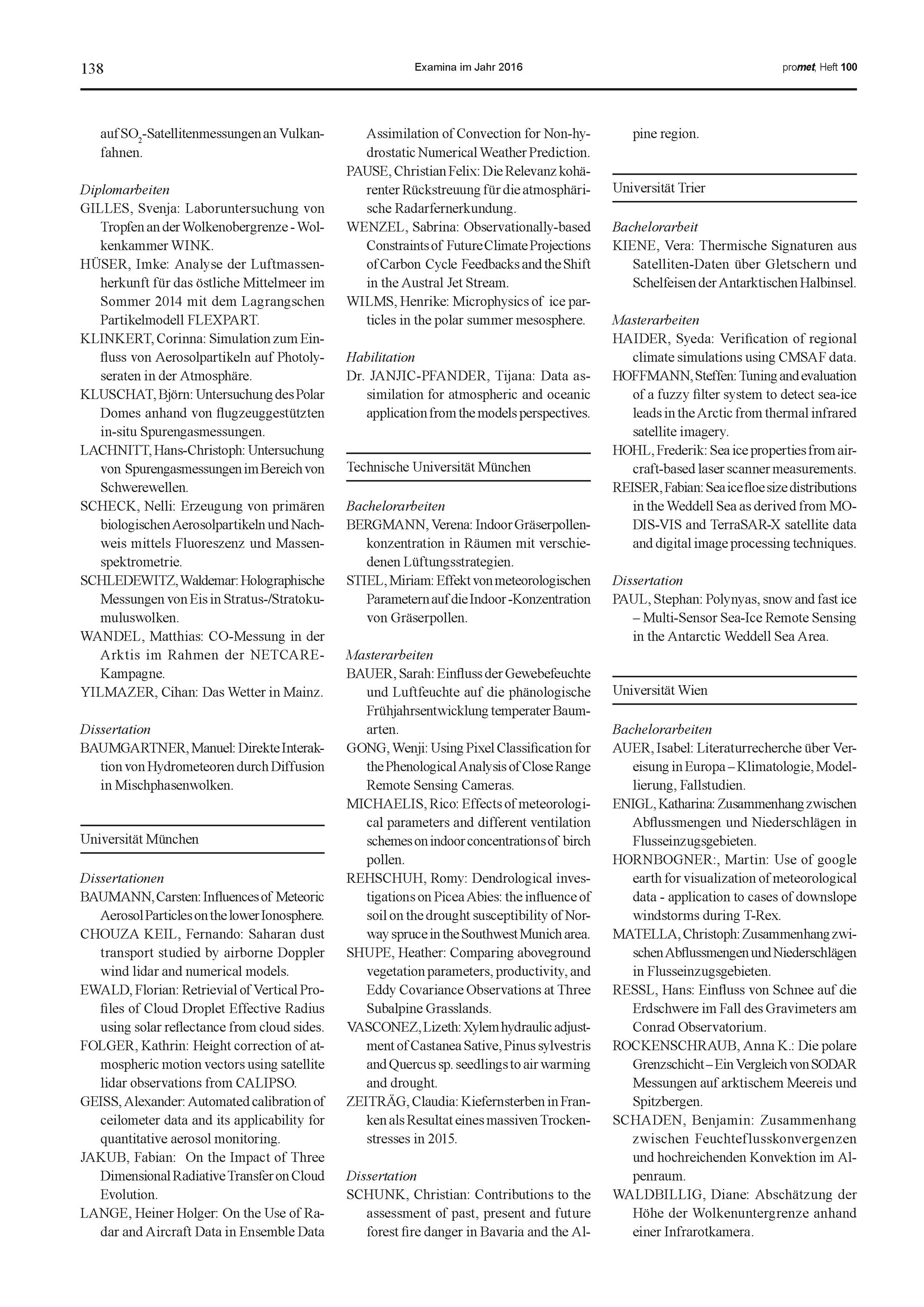 8. H. Deneke, R. Hollmann, A. Hünerbein: Satellitengestützte Untersuchungen der Strahlungsflussdichten und der Strahlungsbilanz am Oberrand der Atmosphäre und am Erdboden