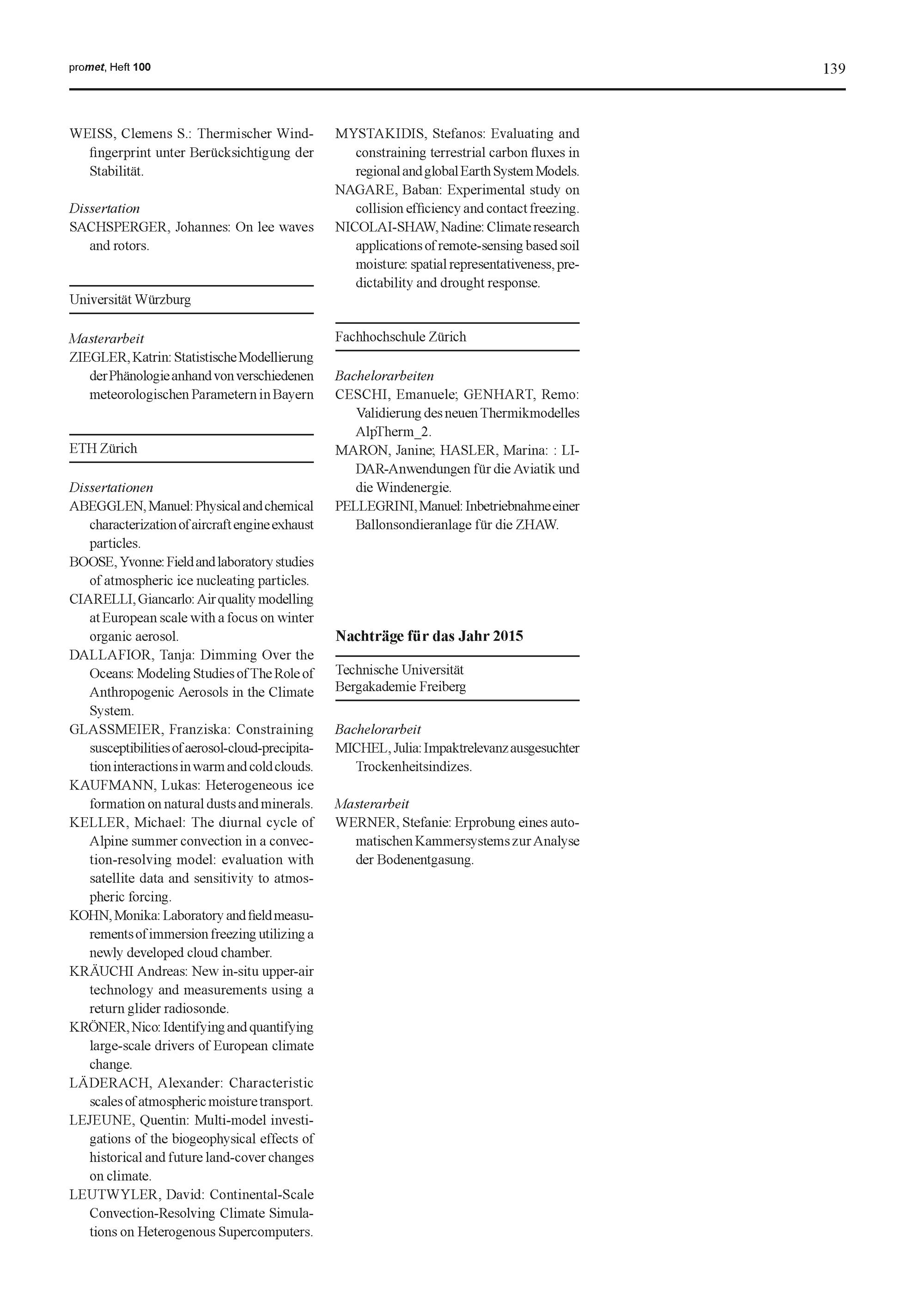 10. M. Wendisch, A. Ehrlich, J. Stapf: Strahlungsbilanz und Fernerkundung von Wolken mit Hilfe von Flugzeugmessungen